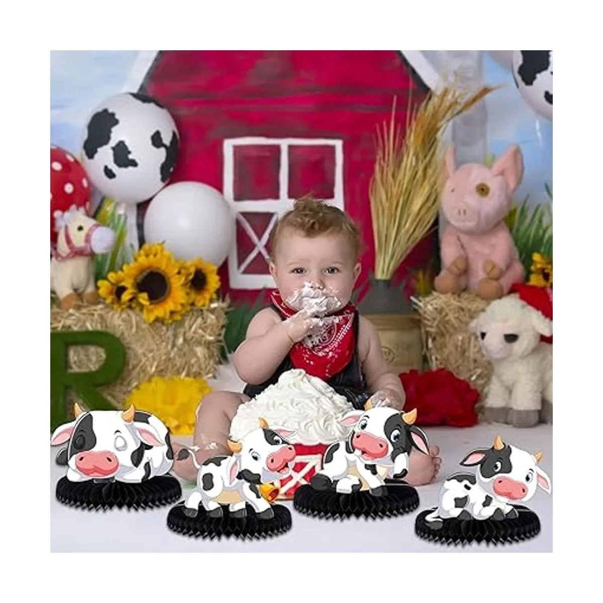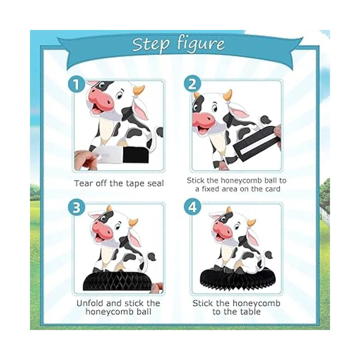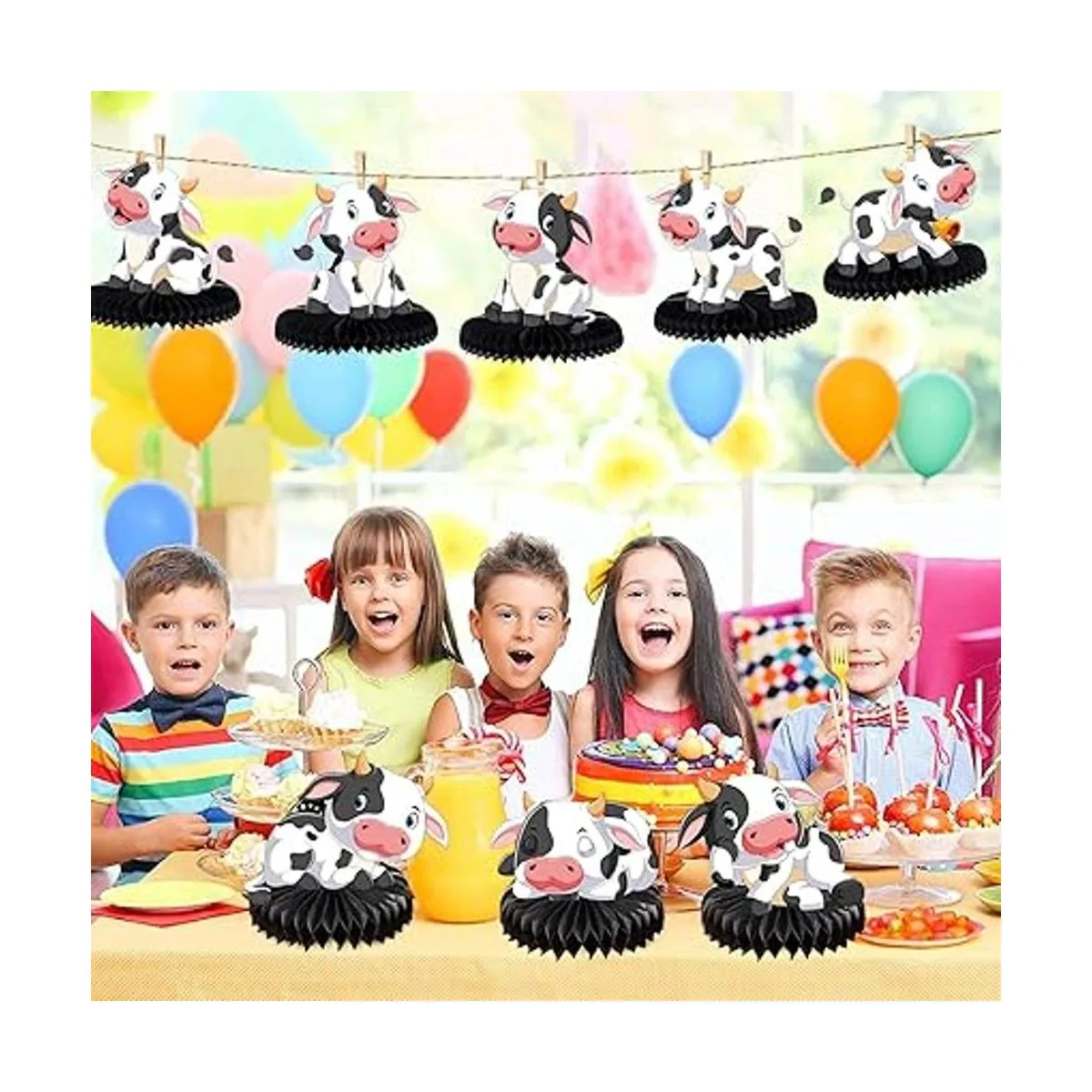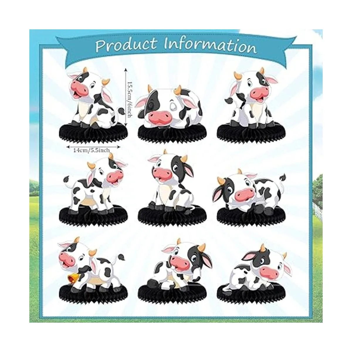 Material de calidad: el centro de mesa con estampado de vaca está hecho de papel de tarjeta de calidad, adopta impresión digital de calidad que lo hará sin costuras, duradero, ligero y no se decolora; el panal está hecho de papel de elección, no se decolora.