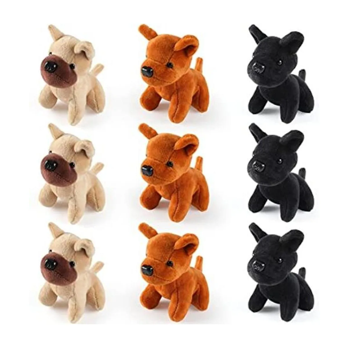 Contenido del paquete: recibirás 9 mini cachorros de peluche en 3 colores clásicos, incluyendo negro, marrón, amarillo, cada color para 3 piezas, y tienen un pequeño bucle en la parte posterior de cada uno, puedes fijar un llavero, por lo que se pueden fijar a la mochila, llaves o teléfono, encantador y delicado