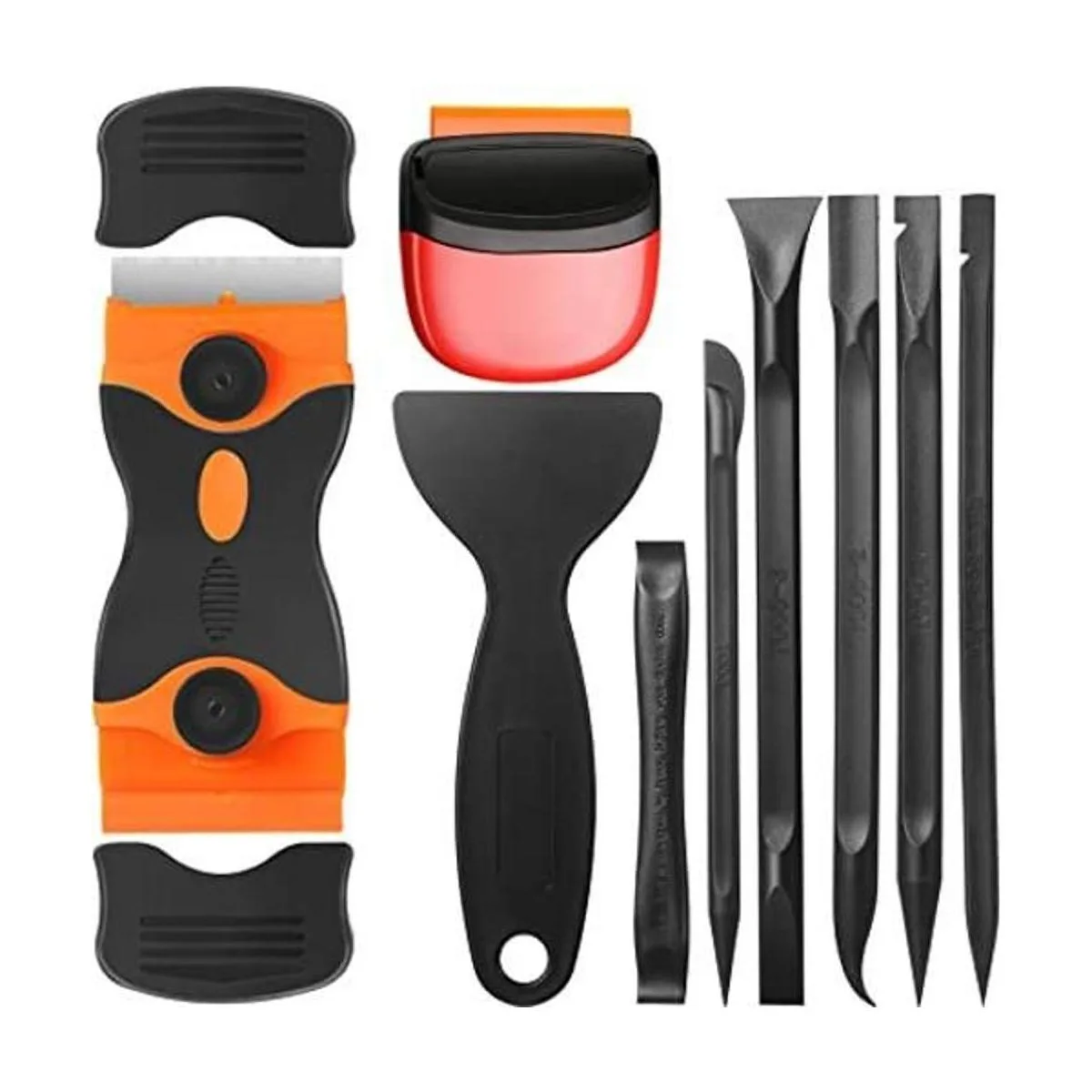 9 piezas de raspador de cuchillas de plástico multiusos, herramienta de tinte antiarañazos, fácil de limpiar, grietas y espacios reducidos, adecuado para quitar calcomanías de piso de vidrio de ventana, etiquetas, calcomanías y limpieza de pintura