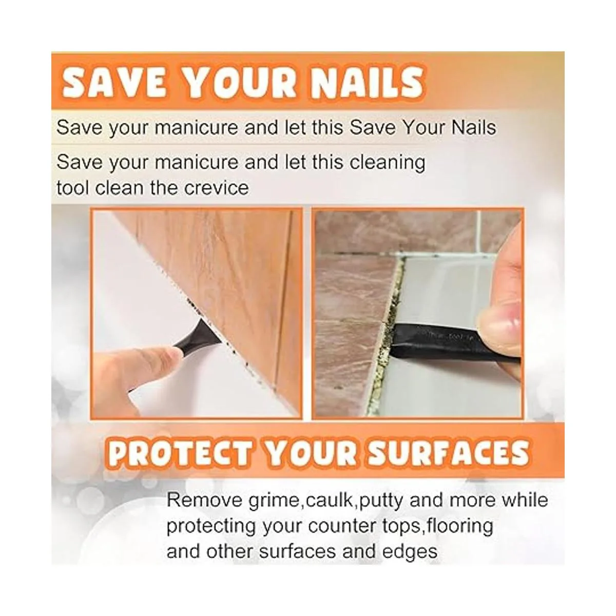 Material de calidad: el raspador está hecho de plástico, que es resistente y duradero, con alta dureza que no es fácil de romper bajo presión; excepto el acero, la superficie no dejará arañazos después de su uso; puedes dejar que la herramienta de limpieza de raspado haga el trabajo y aegis tus uñas