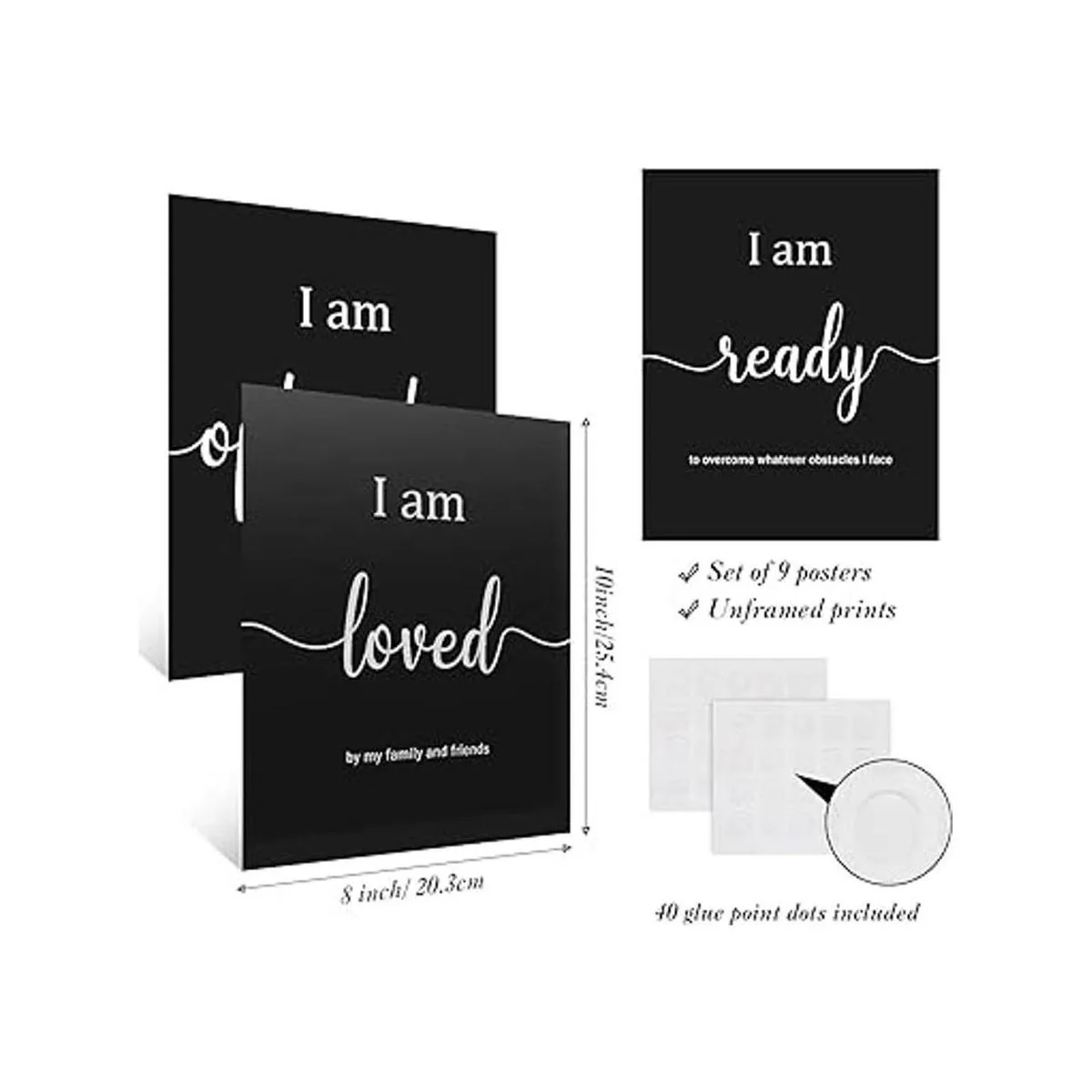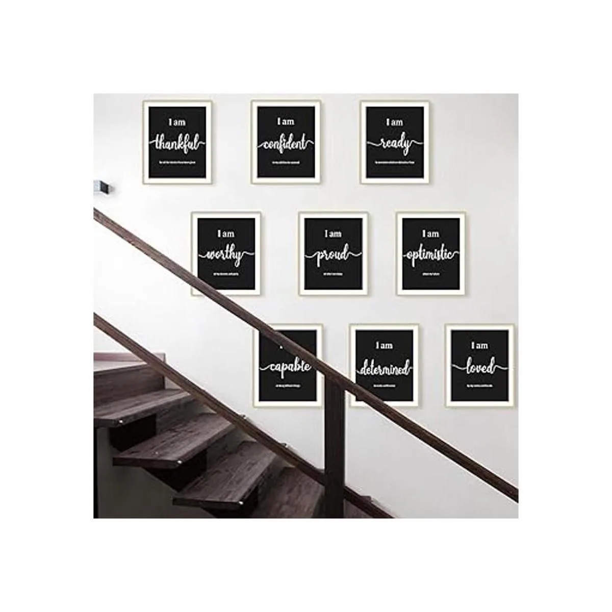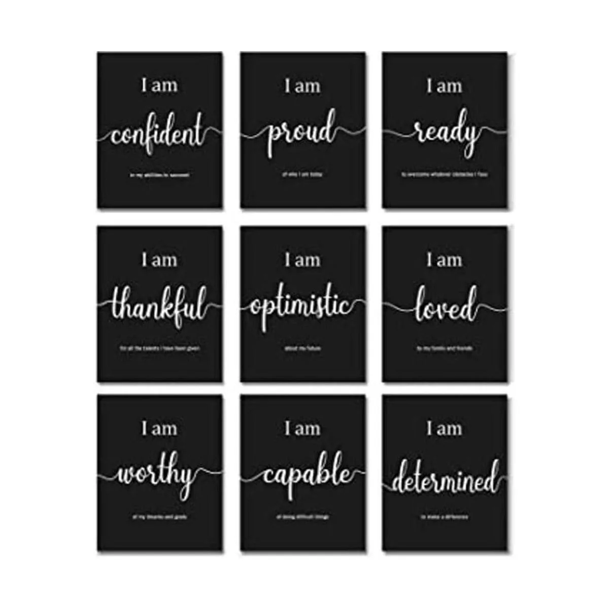 9 piezas inspiradoras motivadoras arte de pared para oficina, dormitorio, afirmaciones positivas diarias para hombres, mujeres y niños, carteles inspiradores con citas positivas inspiradoras, decoración de pared negro