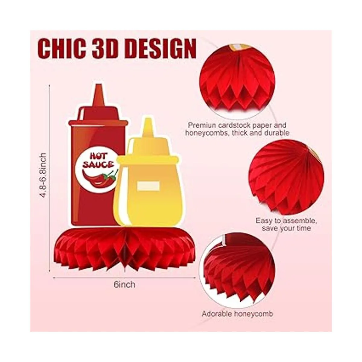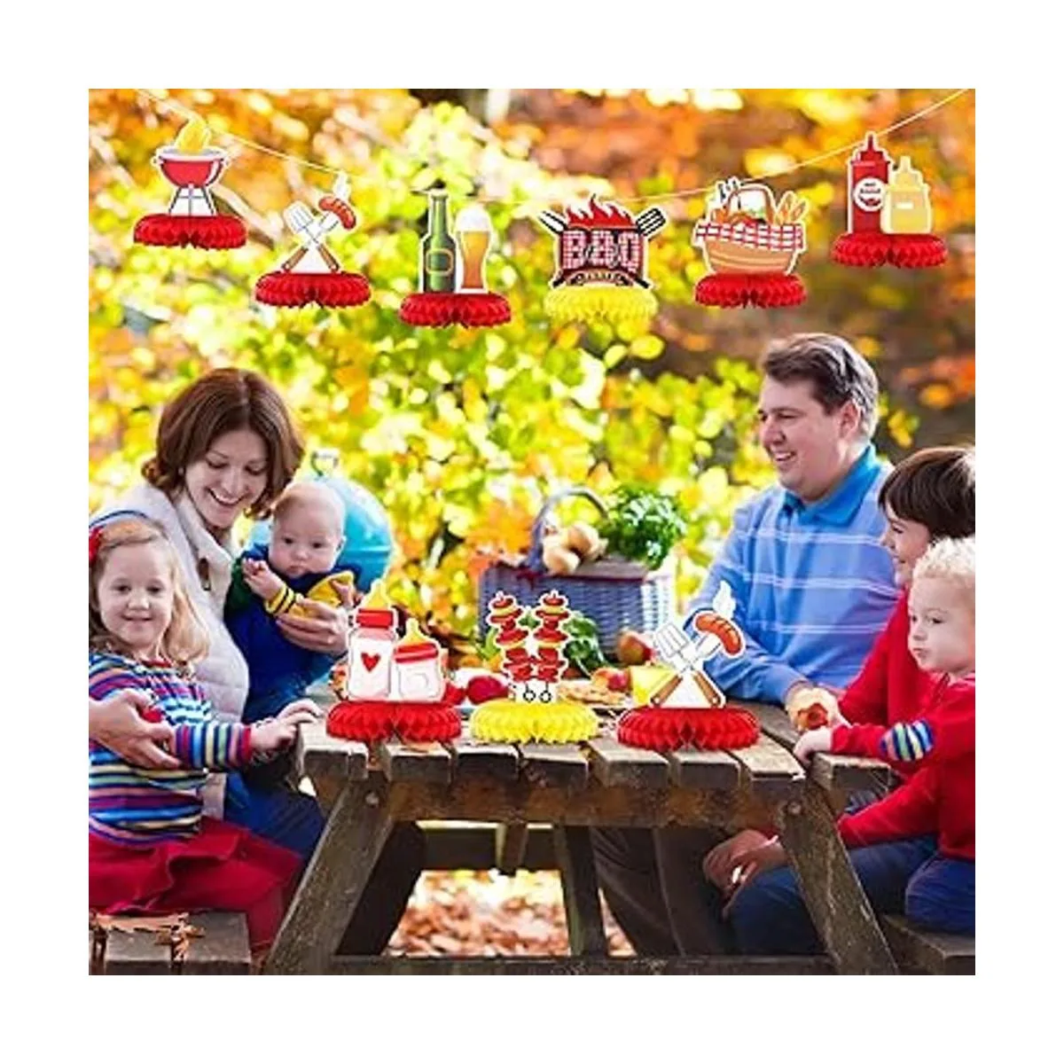 Fácil de usar: este centro de mesa de panal con temática de barbacoa es un diseño 3D, que se puede dar forma rápidamente, plegable y ligero, también puedes ponerlo en tus bolsos cuando vayas a hacer un picnic con tus amigos