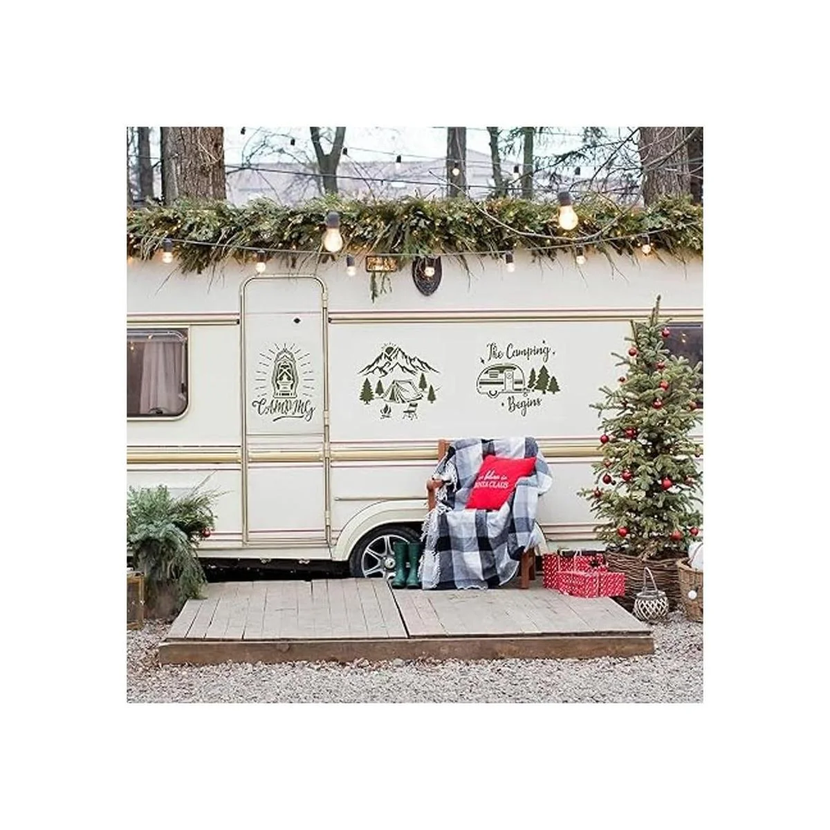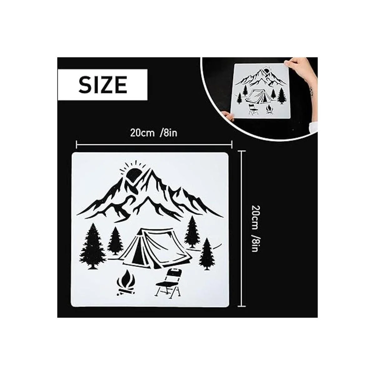 Diseño elegante: estas plantillas de pintura con temática de campamento cuentan con varios patrones y palabras relacionados con el campo, y puedes aplicar estas plantillas de patrón de campamento para decorar tus artículos, lo que puede hacer que tu artículo se convierta en hermoso