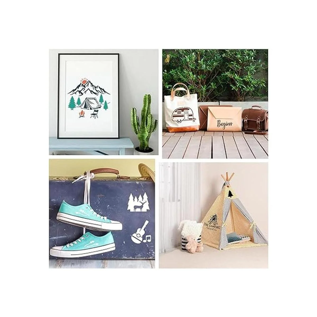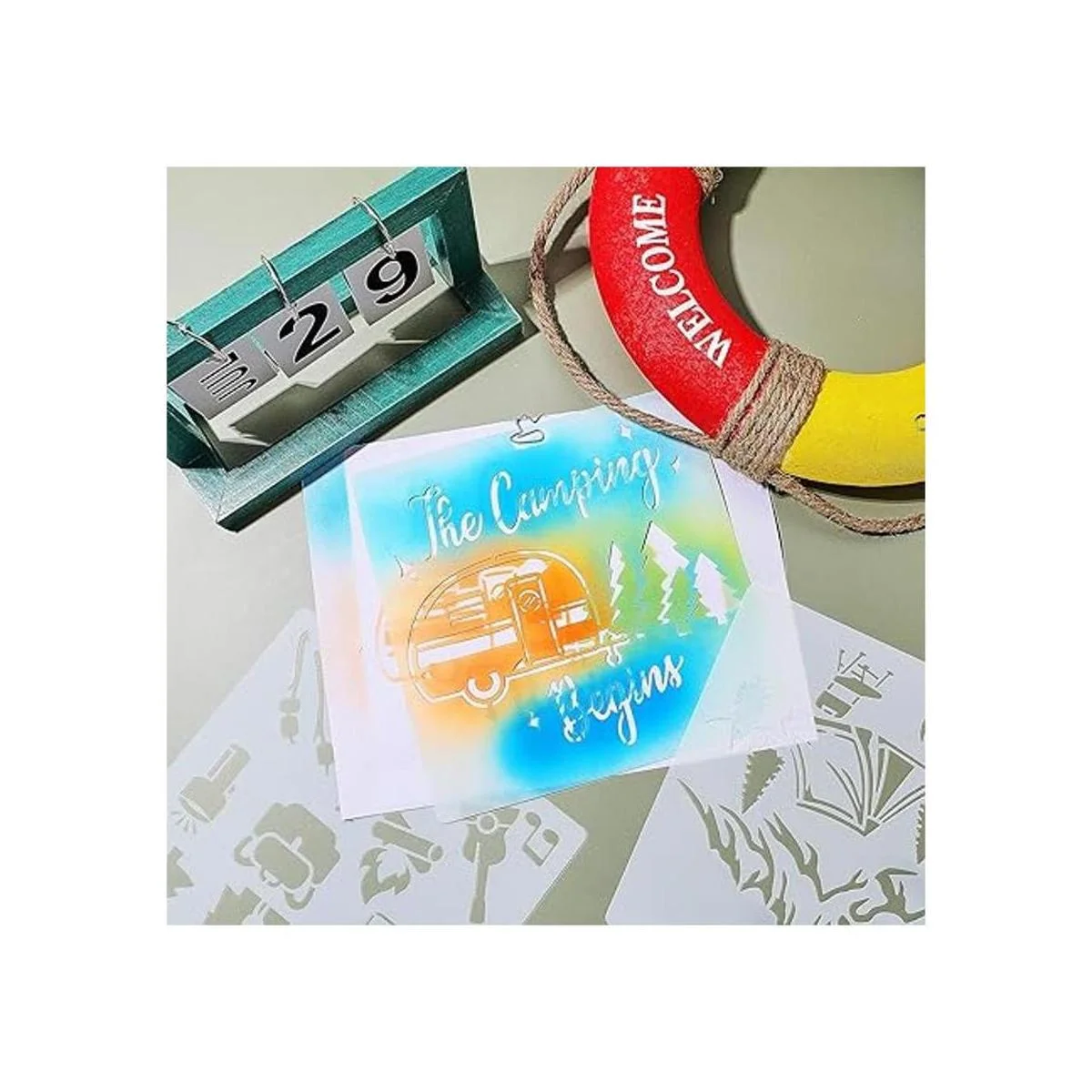 Amplia aplicación: nuestras plantillas de pintura con temática de campamento son adecuadas para madera, manualidades, decoración del hogar, por lo que puedes utilizar pinturas acrílicas, pulverización de aire, pintura de pincel pequeño en suelos, paredes, mesas, armarios, almohadas, bolsos y otros lugares que desees decorar trazando las plantillas