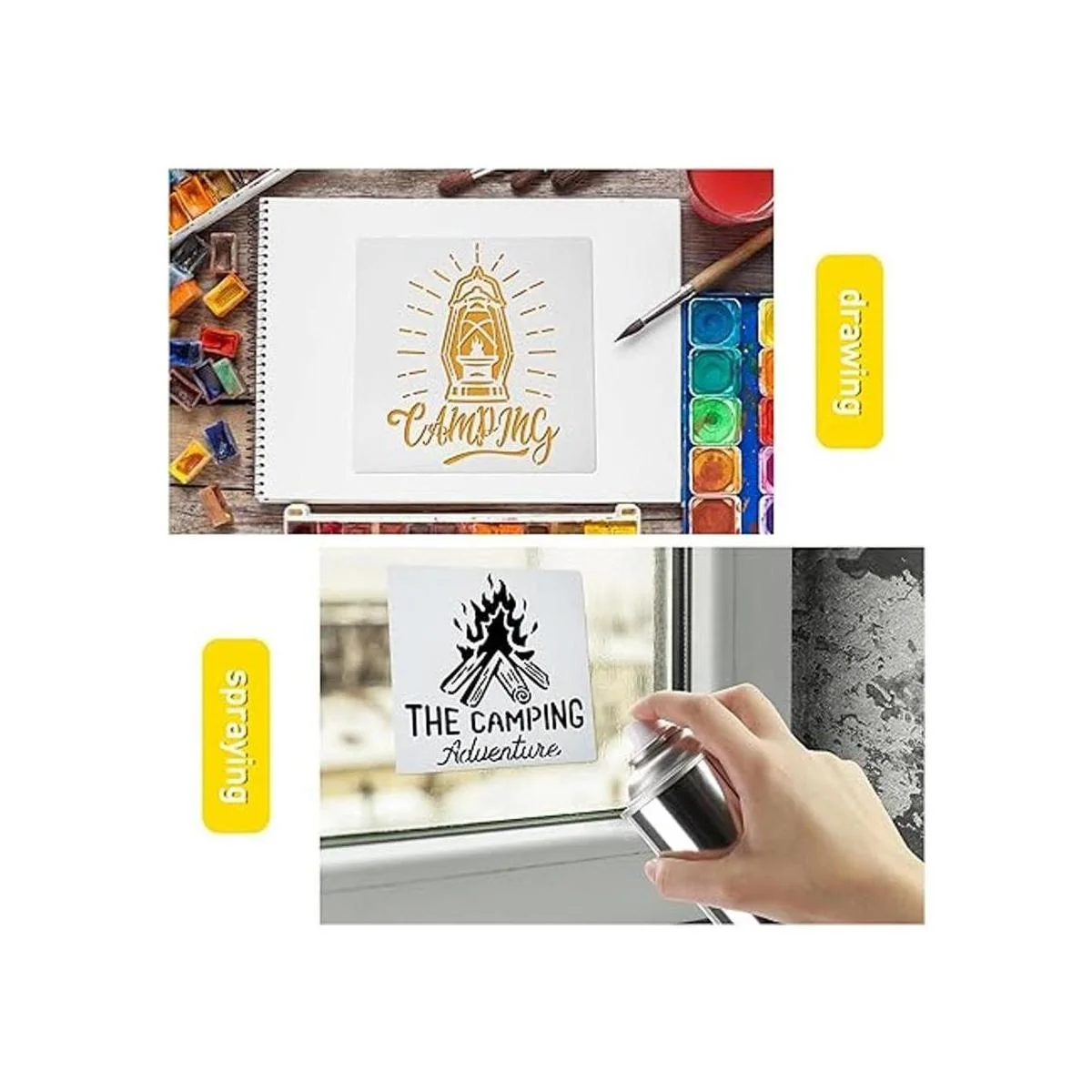Material reutilizable: estas plantillas de campamento al aire libre están hechas de material PET, que es duradero y fiable, no es fácil de romper con bordes lisos, ligeras y lavables, por lo que pueden servirte durante mucho tiempo, fácil de operar para tus hijos