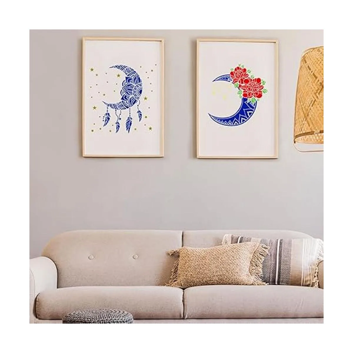 Amplias aplicaciones: puedes aplicar estas plantillas de sol y luna de mandala para hacer pintura acrílica, pintura de tiza, pulverización de aire natural, pintura de pincel pequeño en suelos, paredes, azulejos, mesas de madera, armarios, almohadas, lienzo en blanco, bolsas de regalo y más; son suministros ideales para diferentes proyectos, como carteles de madera, manualidades de pintura, decoraciones del hogar, etc