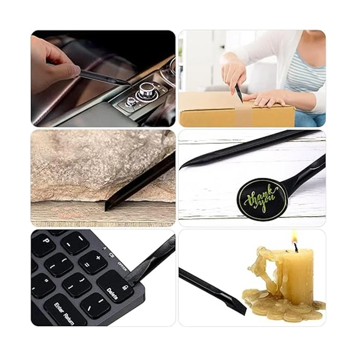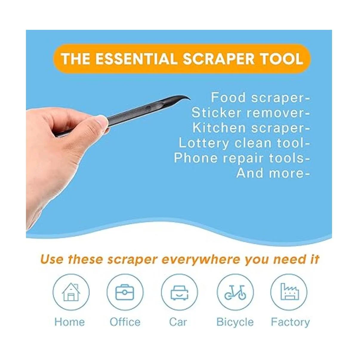 Amplias aplicaciones: esta herramienta rascadora de plástico es ideal para limpiar grietas, mientras protege tus uñas; también son adecuadas para quitar etiquetas adhesivas, grasa, pintura, cera de velas, suciedad, jabón, alimentos secos, boletos de lotería y más en cocina, coche, baño, oficina, motocicleta, barco, taller, garaje; también se puede aplicar como una herramienta de reparación electrónica abierta para LCD, tableta