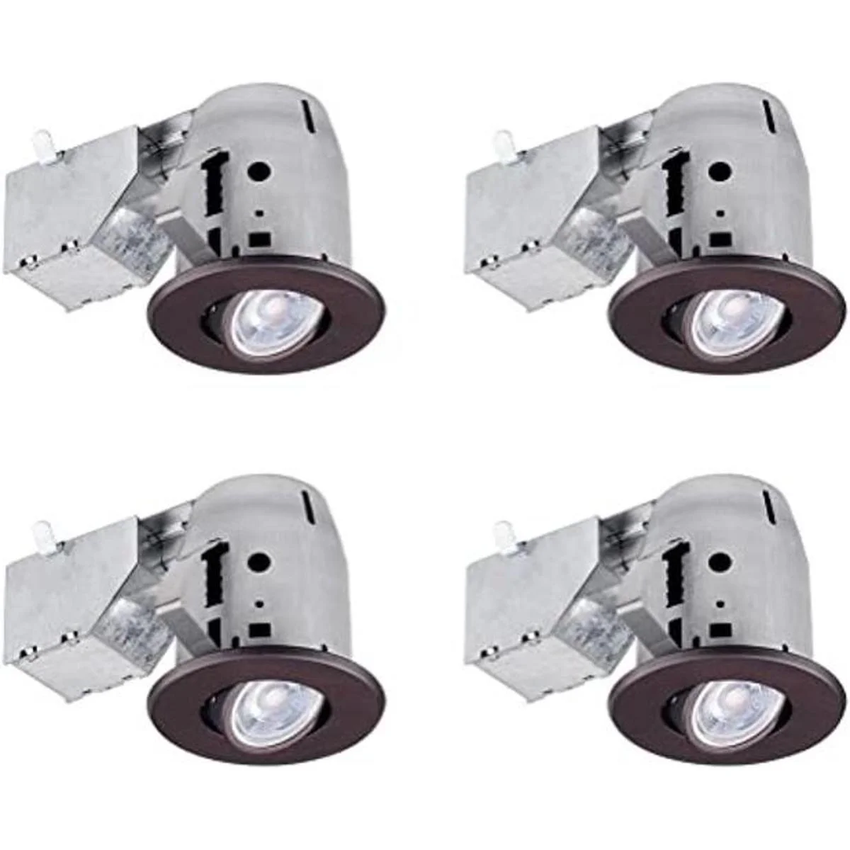 90965 Kit de iluminación empotrada con borde redondo giratorio de 3 pulgadas, bronce aceitado, clips de fácil instalación, bombillas LED incluidas, tamaño de agujero de 3.25 pulgadas, 90965