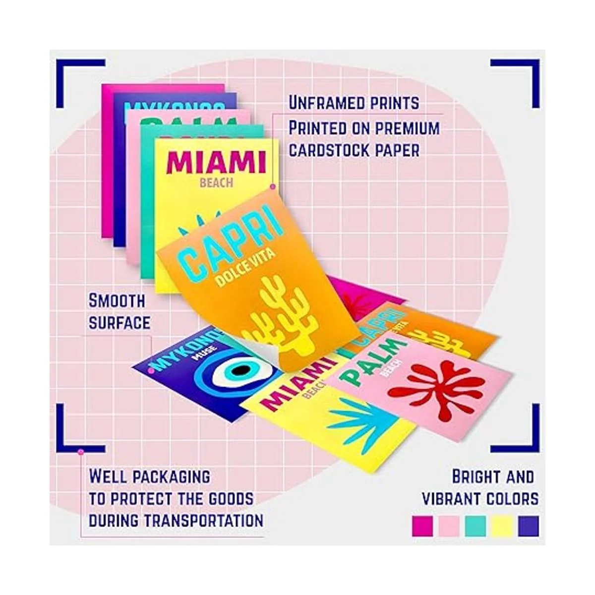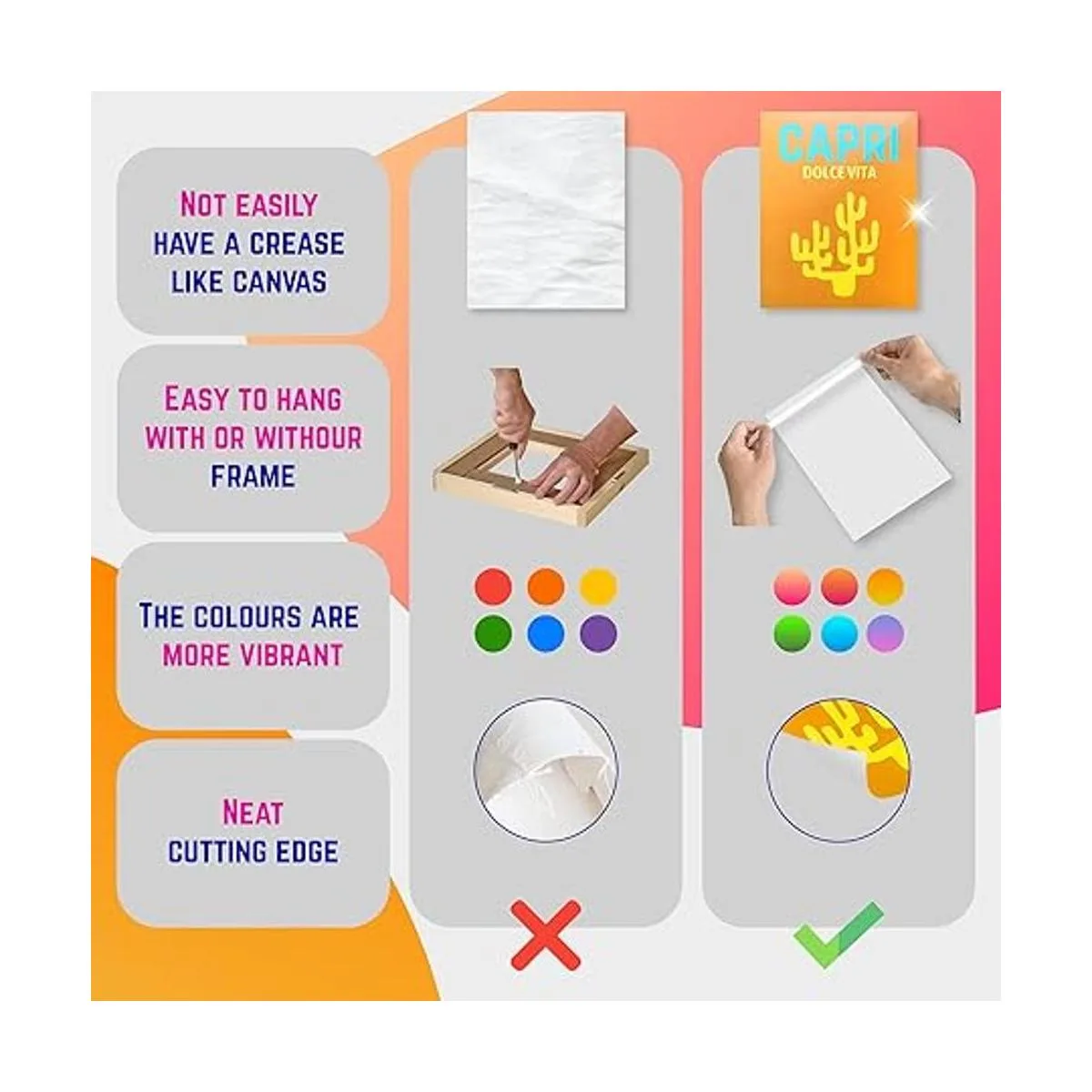 Decoración colorida: impreso en papel de cartulina grueso por tecnología moderna, nuestro colorido arte de pared tiene una superficie lisa, acabado mate con un sutil brillo que aporta una profundidad de color vibrante a la obra de arte
