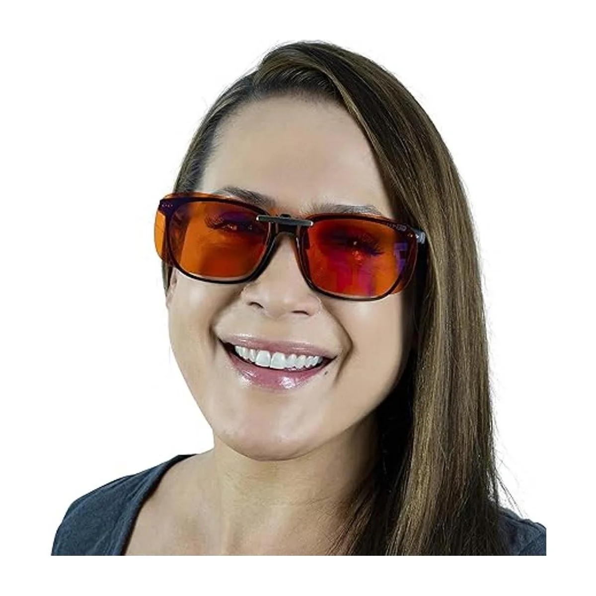 Luce y siéntete mejor Día y Noche Las mujeres y los hombres nos dicen que se ven y se sienten mejor cada día y noche porque disfrutaron de una buena noche de sueño después de llevar sus nuevas gafas de bloqueo Sleep ZM en el trabajo y juego: Clip de 1 mano fácil pellizcar a tus anteojos de prescripción o lectores.