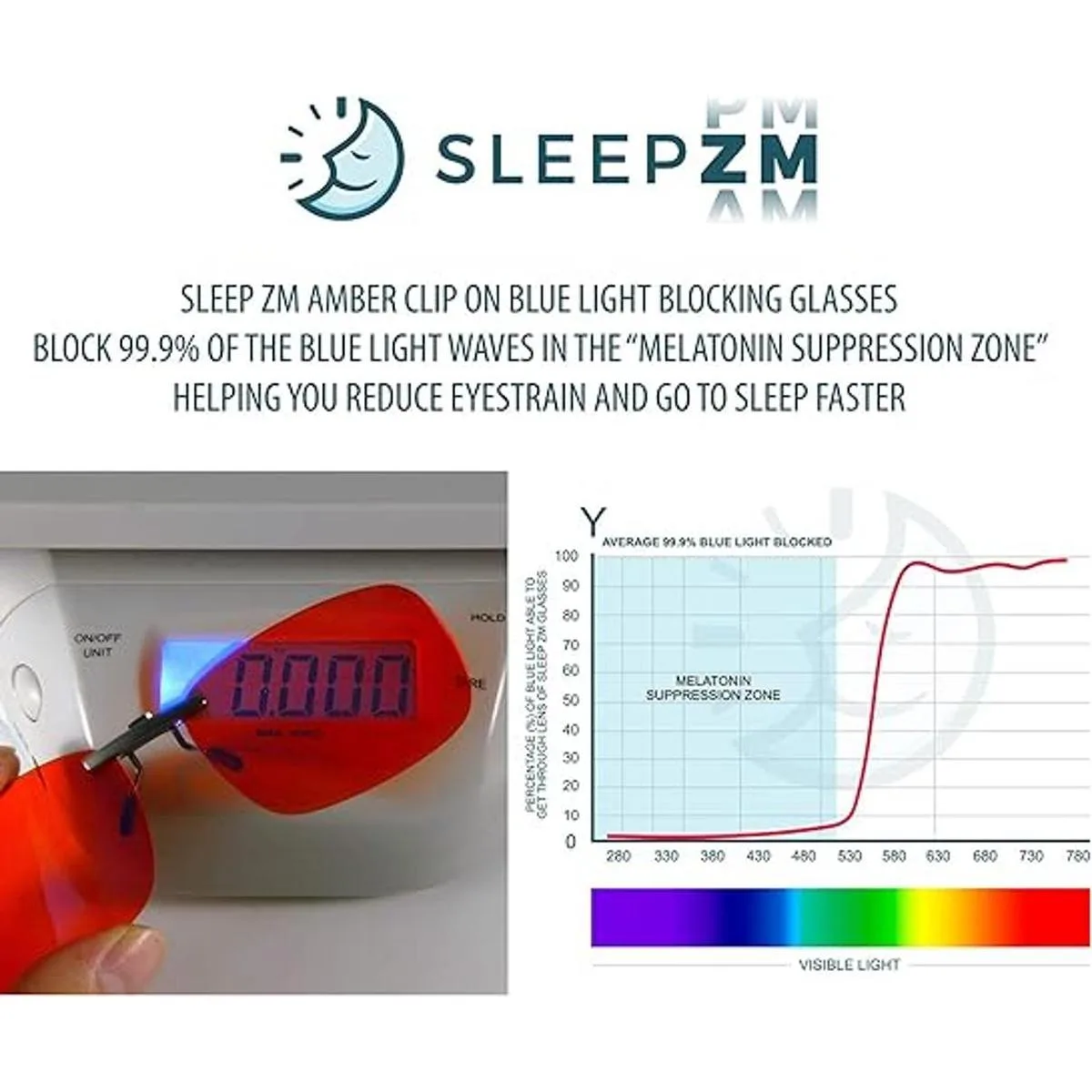 Vive más saludable, mejor y más largo: los estudios demuestran que una buena noche de sueño te ayuda a vivir una vida mejor y más larga de muchas maneras: somos más inteligentes cuando necesitamos ser; mantener un peso corporal más saludable; rendir mejor en el trabajo, deportes y nuestra vida diaria; somos más fuertes, emocionales, mentales y físicamente. No te conformes con menos, o pagues más por gafas sin el estilo, tecnología y protección de bloqueo de luz azul del 99,9 de los clips Sleep ZM.