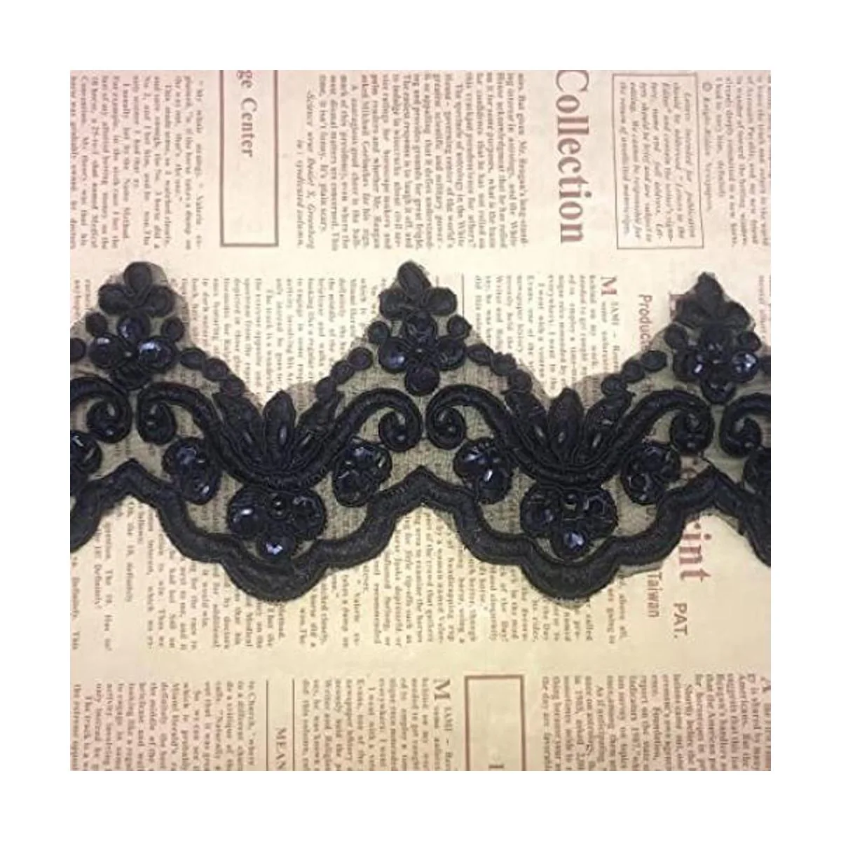 9CM Width Bead Little Wave Pattern Inelastic Embroidery Lace Trim,Curtain Tablecloth Slipcover Bridal DIY ClothingAccessories.3 Yards in one Package Black