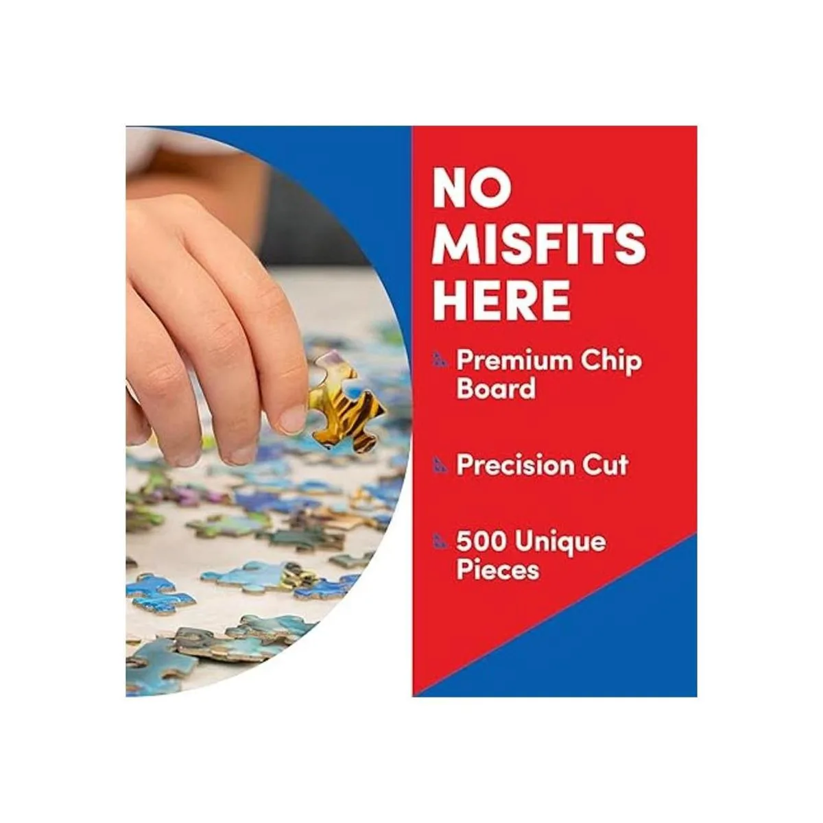 Elige tu tamaño: los desafiantes rompecabezas redondos para adultos y niños están disponibles como un rompecabezas de 500 piezas o rompecabezas de 1000 piezas con la pieza acabada que mide 20 o 27 pulgadas respectivamente. El rompecabezas de animales salvajes se completa con interconexiones contorneadas para un mejor ajuste y una disminución del estiramiento del rompecabezas