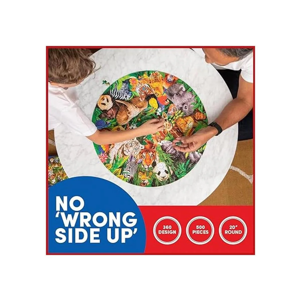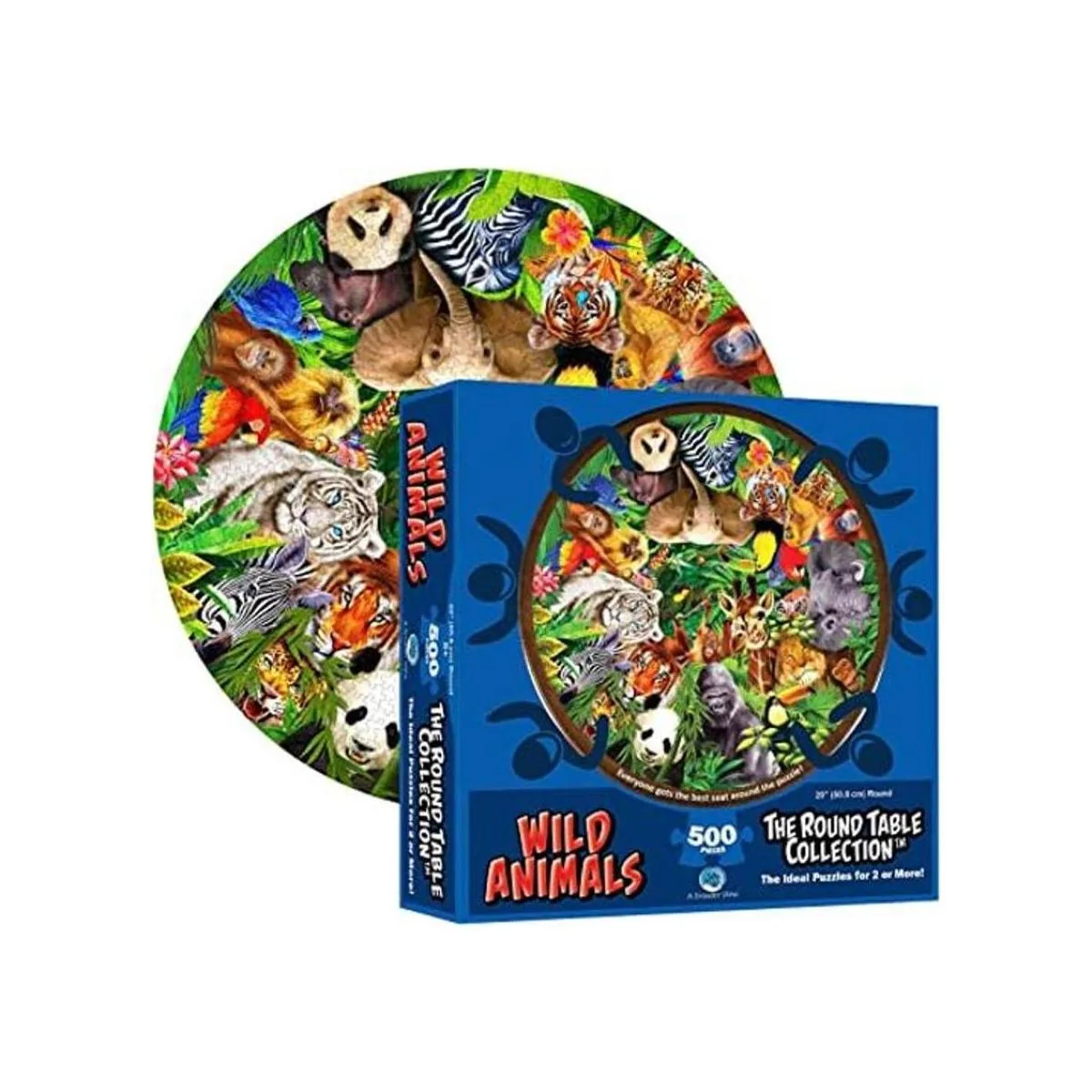 A Broader View Rompecabezas de mesa redonda de animales salvajes, 500 piezas, rompecabezas para adultos y niños, adecuado para grupos de 2 o más, todo el mundo obtiene el mejor asiento en la mesa, incluido póster de 12 x 12 pulgadas