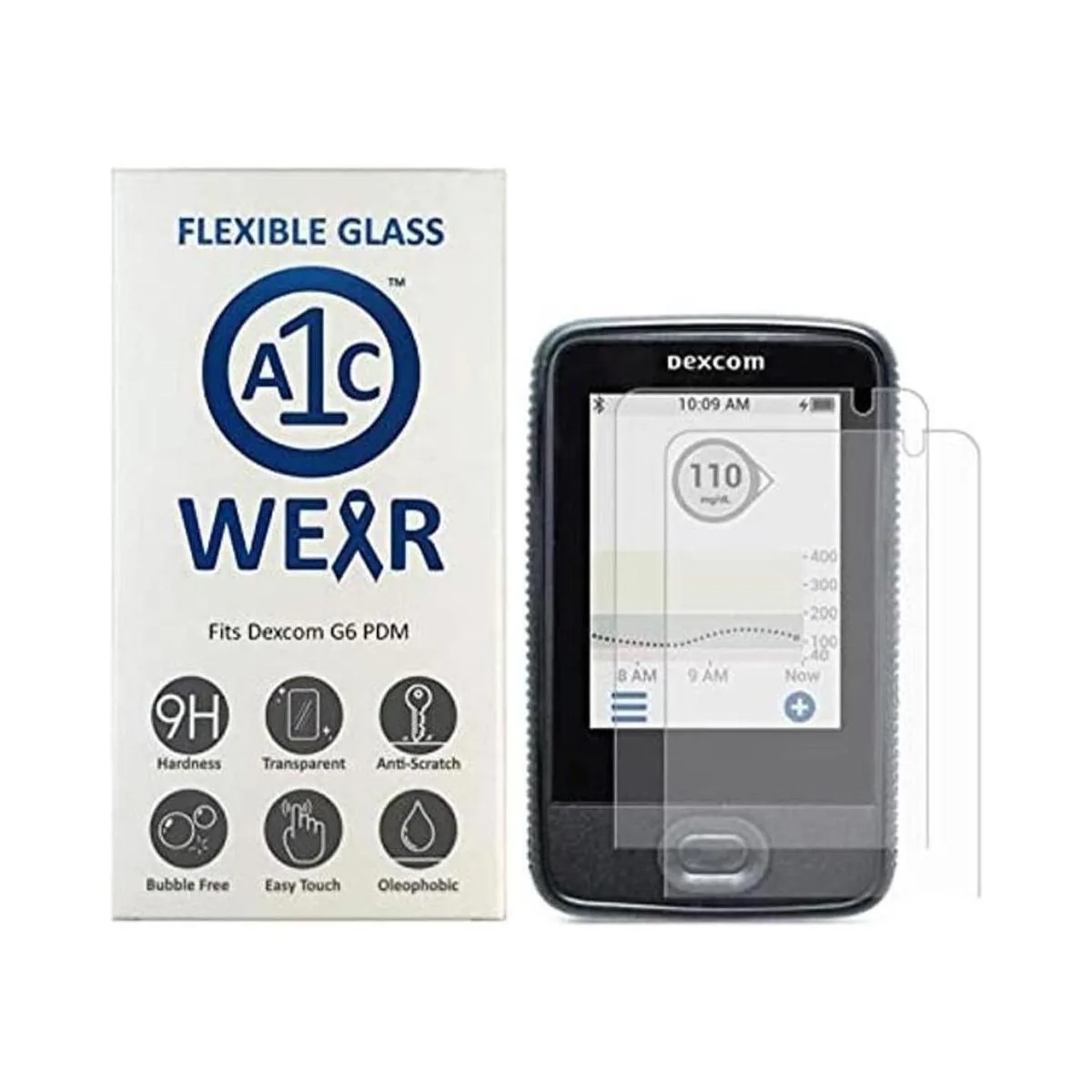 A1C WEAR Protector de pantalla de cristal flexible 9H para receptor Dexcom G6 PDM No se agrieta ni se astilla, antihuellas, antiarañazos, 2 unidades