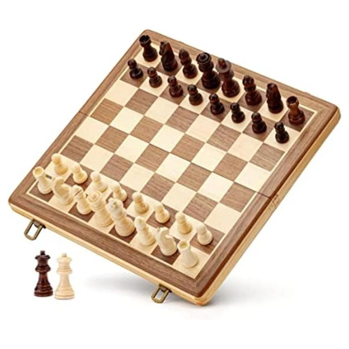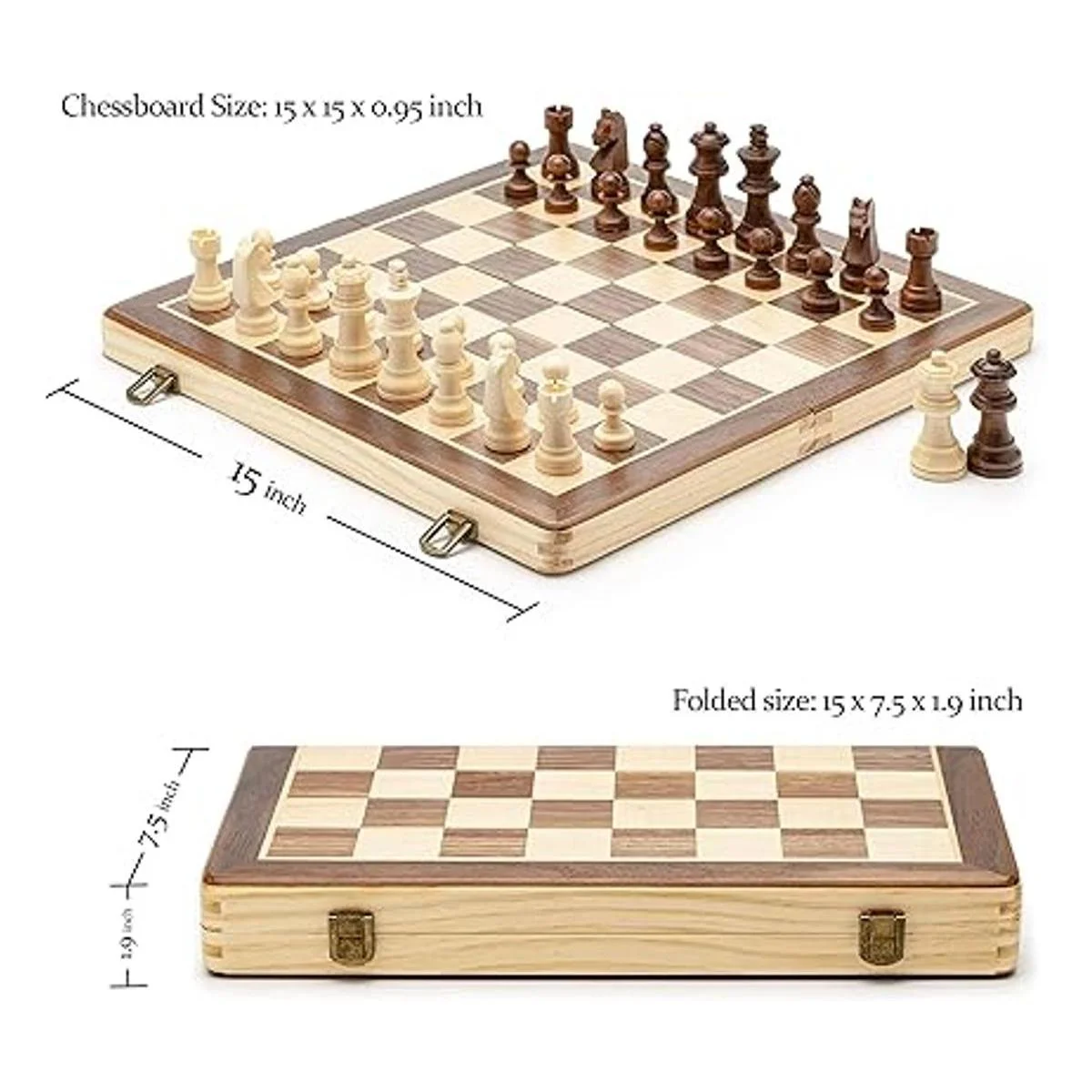 AA Juego de ajedrez magnético plegable de madera de 15 pulgadas con piezas de ajedrez Staunton de altura King de 3 pulgadas, caja de pino con incrustaciones de nogal y arce