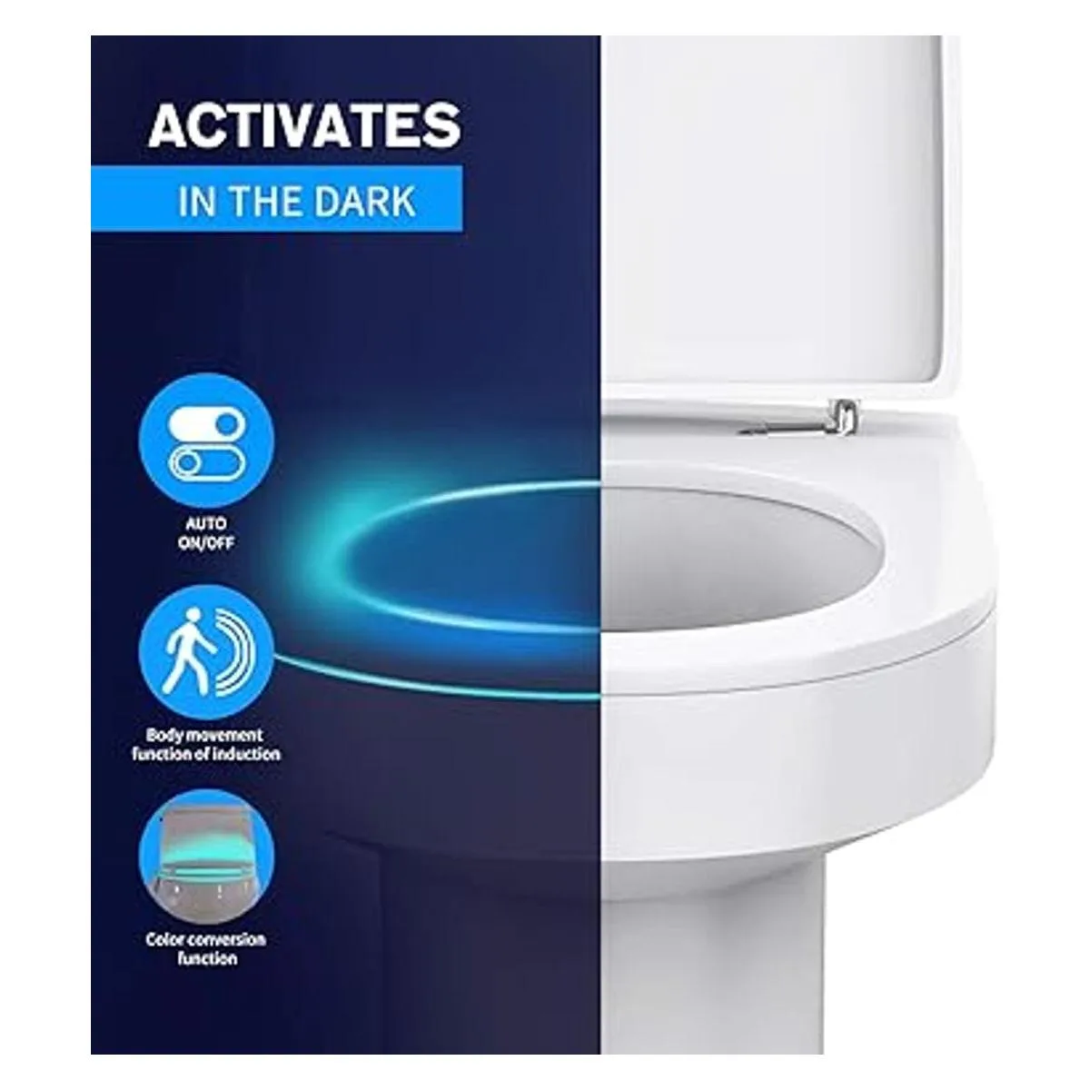 Sensor LED activado por movimiento: no tienes que encender las luces para ir al baño por la noche cuando estás medio dormido, no molestará tu reloj de dormir corporal, se activa por movimiento, solo se enciende cuando entras en el baño en la oscuridad.