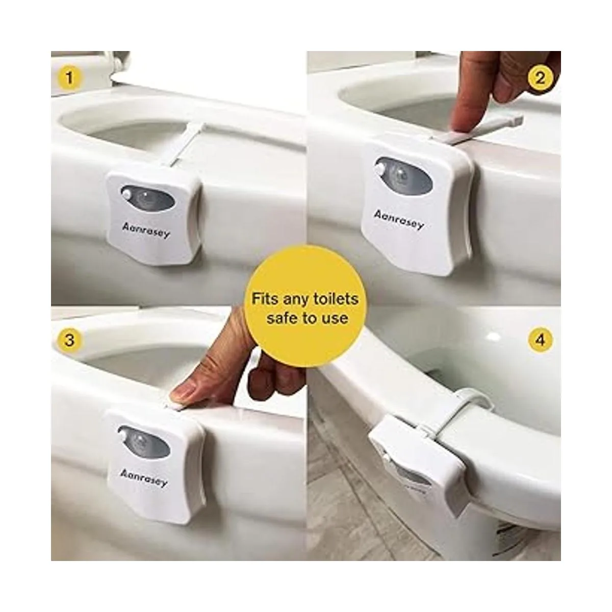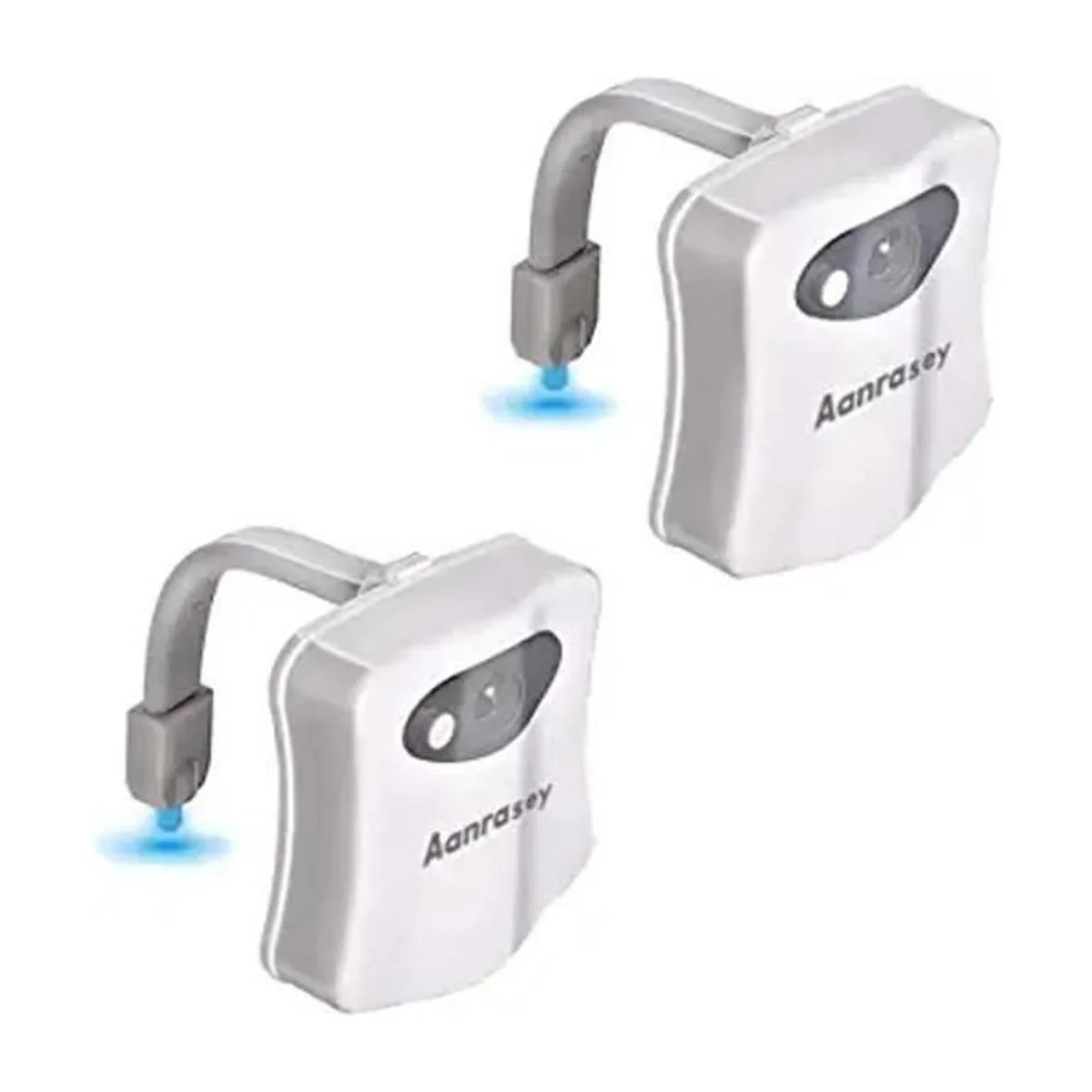 Aanrasey Luz nocturna de inodoro, luz de inodoro para inodoro, luz nocturna LED activada con sensor de movimiento, luz nocturna de 8 colores para decoración de baño, juego de baño para niños paquete de 2