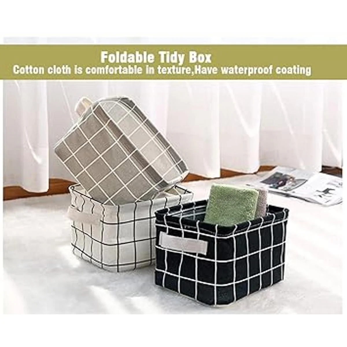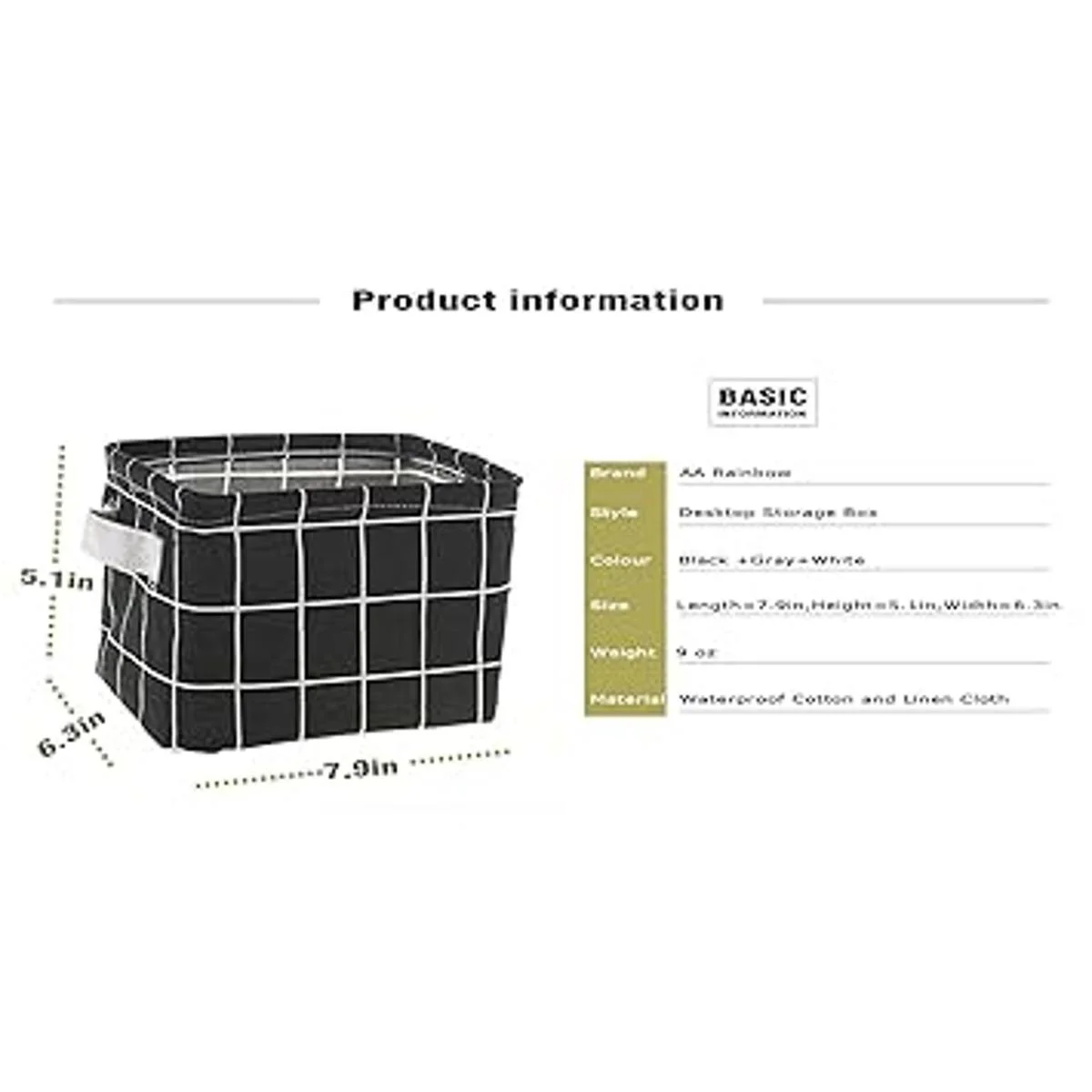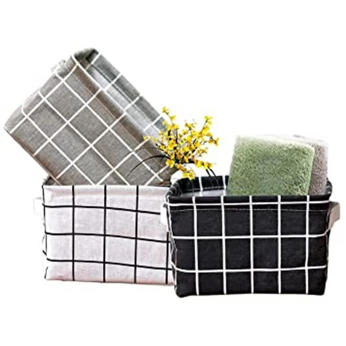 AARainbow 3 paquetes de cestas de almacenamiento de lona, mini cubos de almacenamiento para maquillaje, juguetes de bebé, cestas de almacenamiento de libros, cestas de almacenamiento con asas para estantes y escritorios negro blanco gris