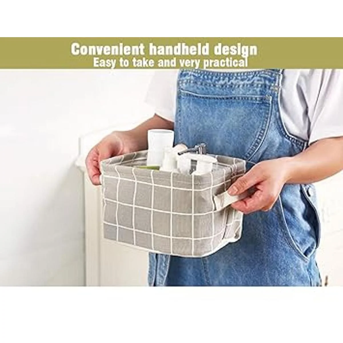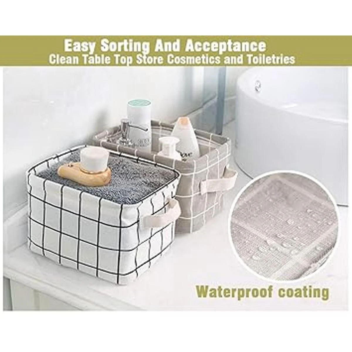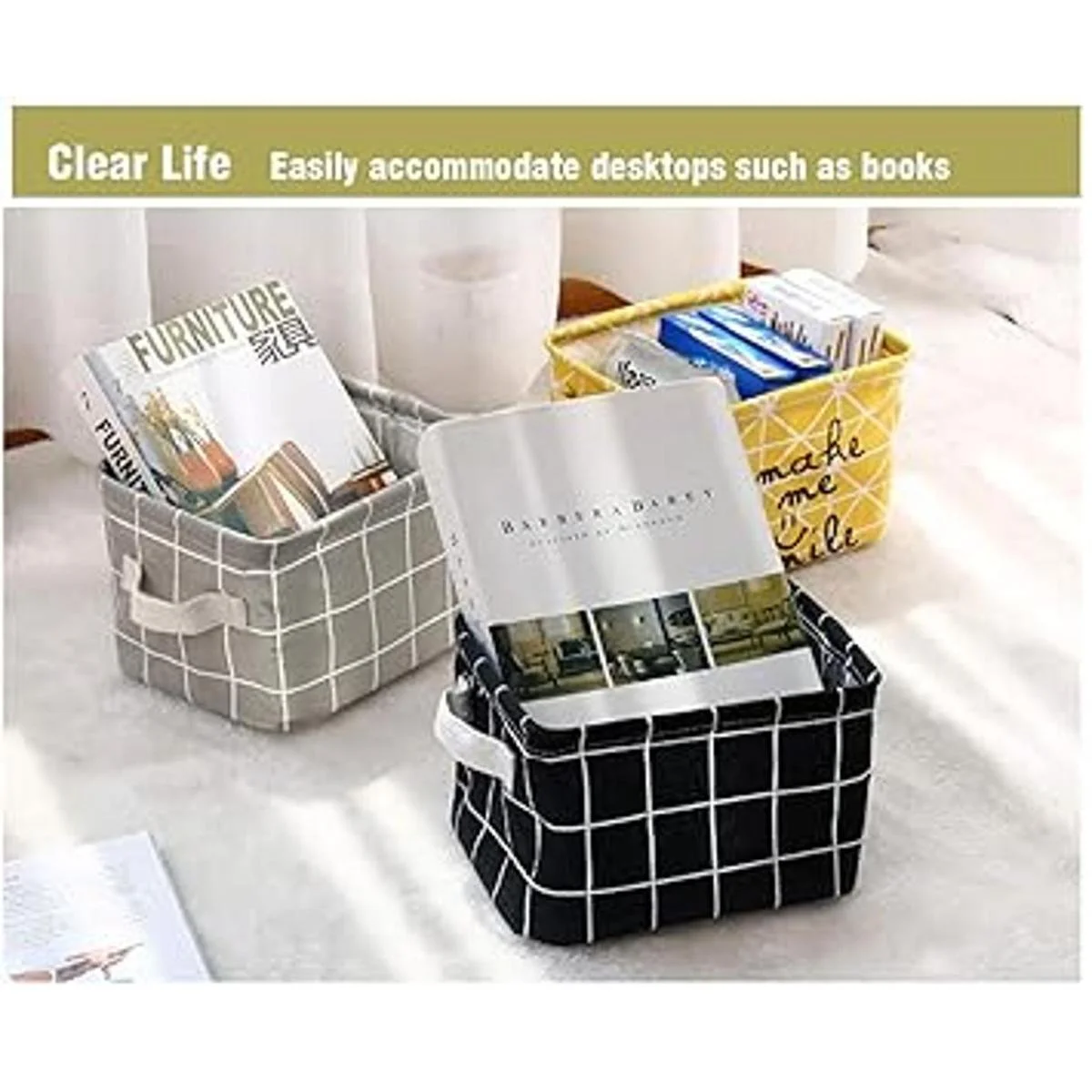 AARainbow 3 paquetes de cestas de almacenamiento de lona, mini cubos de almacenamiento para maquillaje, juguetes de bebé, cestas de almacenamiento de libros, cestas de almacenamiento con asas para estantes y escritorios negro blanco gris