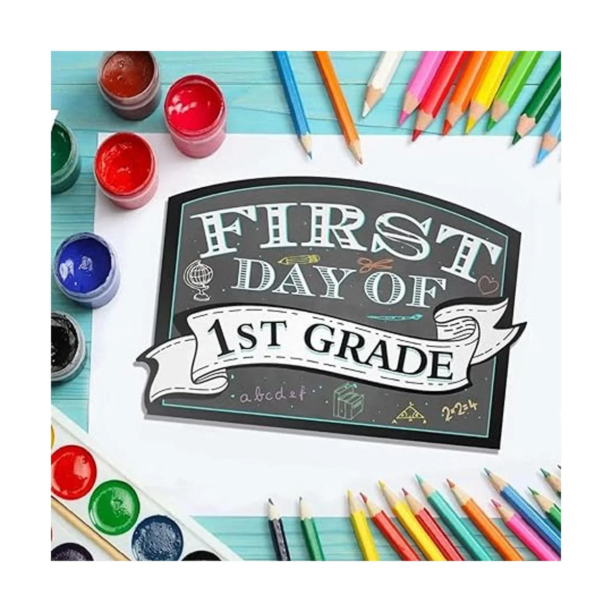 Letrero único de tablero escolar: impresiones brillantes a todo color que añaden alegría y combinarán con el entusiasmo de tu hijo durante el primer día de preescolar, jardín de infantes o primer grado. Colores brillantes y bonito diseño que mejoran el afecto de los niños.