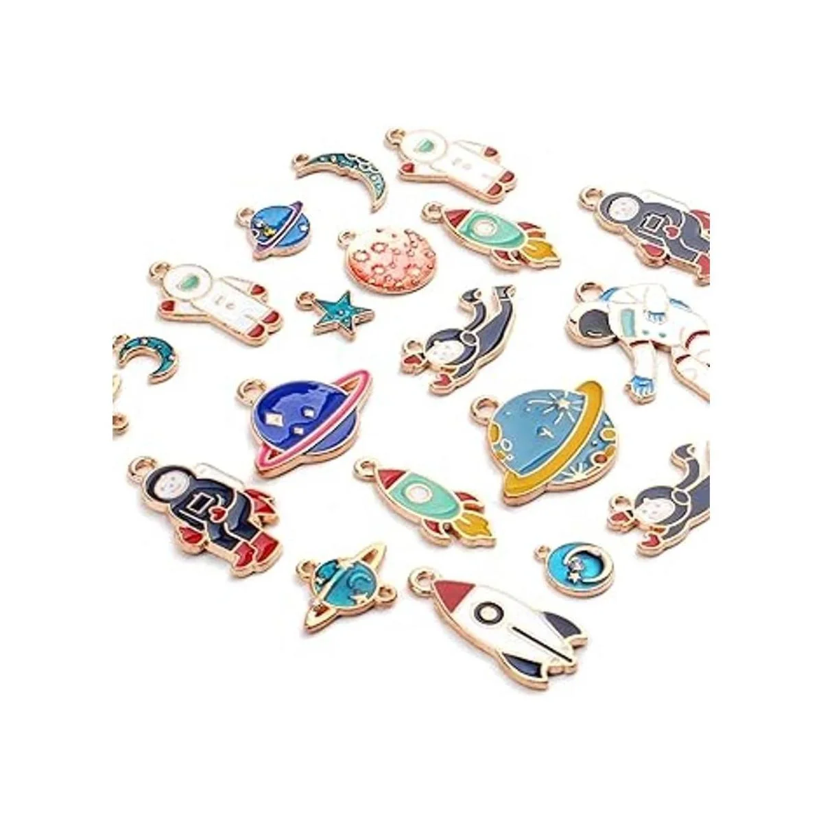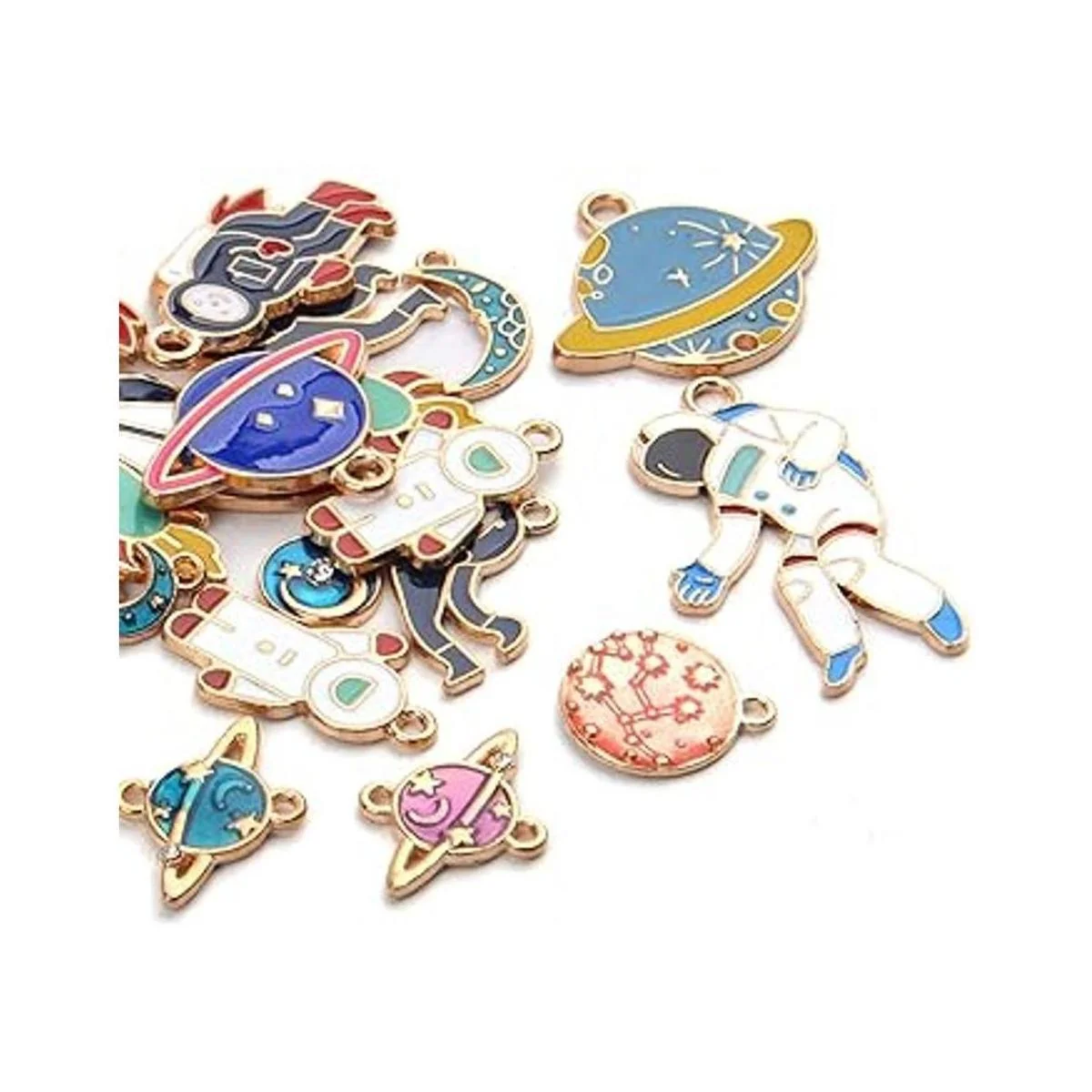 Abalorio con temática espacial, 20 piezas de esmalte chapado en oro para joyas y manualidades
