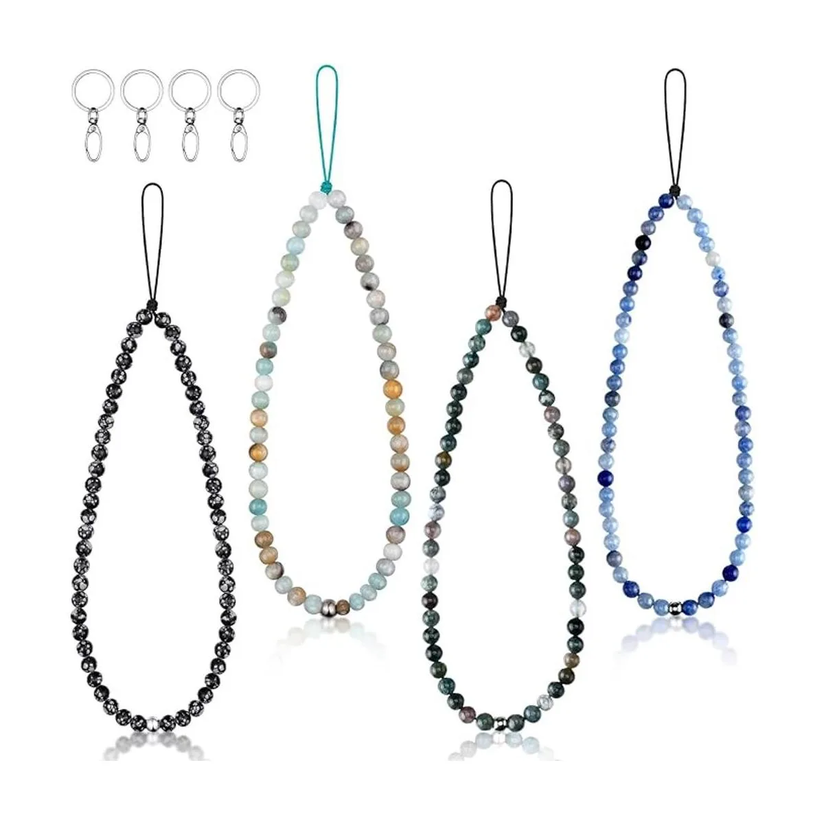 El paquete contiene: recibirás 4 correas de cuentas para teléfono con diferentes diseños, cada una con un llavero para uso a juego; cantidad suficiente es suficiente para satisfacer tus diversas necesidades diarias, y también son buenos accesorios de moda