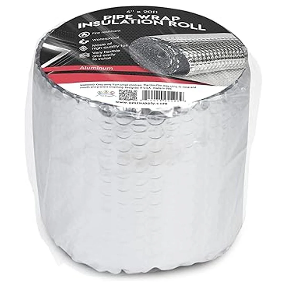 ABC Aislamiento de tubo de 6 pulgadas x 20 pies. Rollo de aislamiento de lámina reflectante de burbujas de 200 GSM, aislamiento reflectante de 6 x 20 pies, aislamiento de burbujas de aluminio