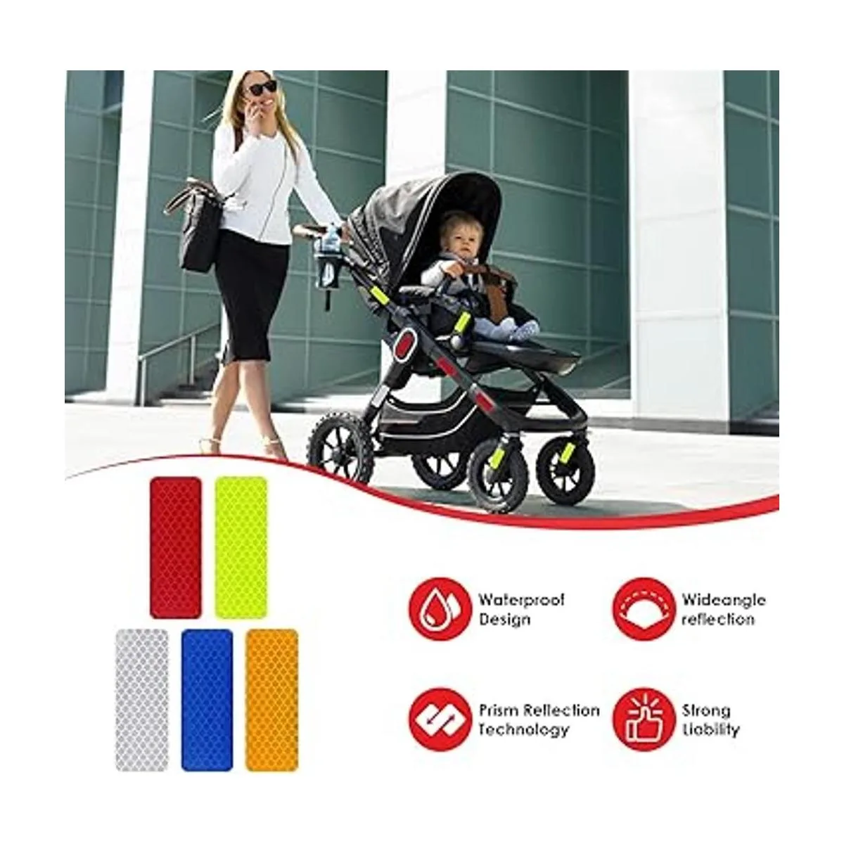Contenido del paquete: hay 30 calcomanías reflectantes de visibilidad en 5 colores en el paquete, rojo, amarillo, blanco, naranja, azul. Cada uno de los cuales mide aproximadamente 1.18 x 3.25 pulgadas, cantidad suficiente para satisfacer tus diferentes necesidades