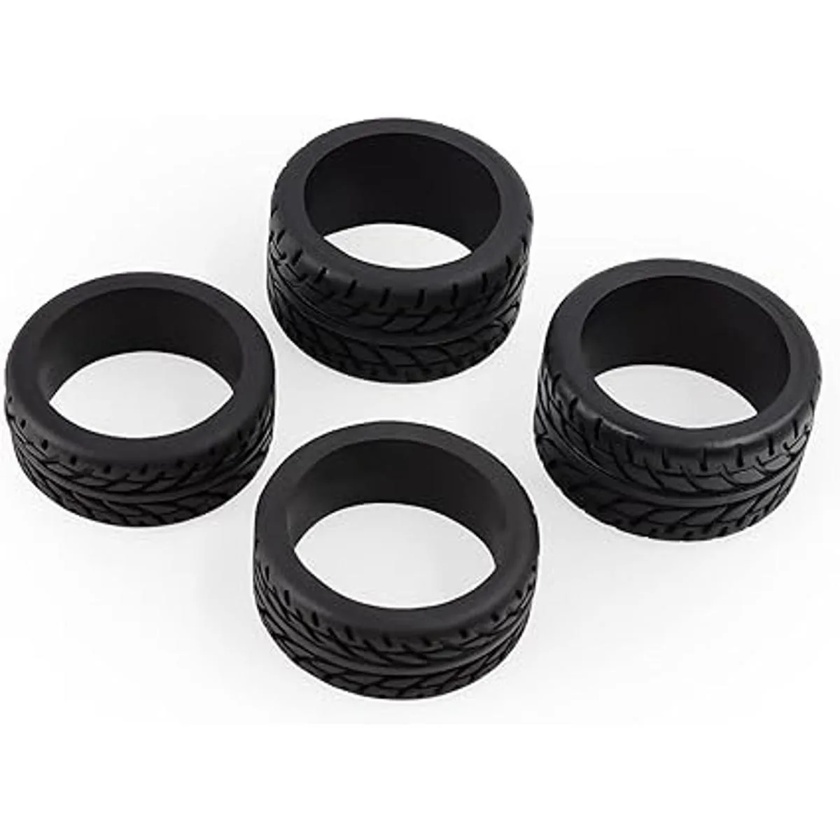3. Buena calidad: los neumáticos están hechos de plástico endurecido de alta calidad, es realmente suave con rayas únicas, específicamente diseñado para carreras de velocidad de auto a control remoto