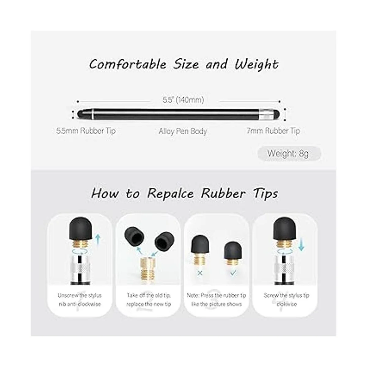 Diseño 2 en 1: 2 tamaños diferentes de puntas de goma 0.21 pulgadas / 0.27 pulgadas en ambos lados del bolígrafo, satisface tus diferentes necesidades. No más problemas con los dedos grandes.