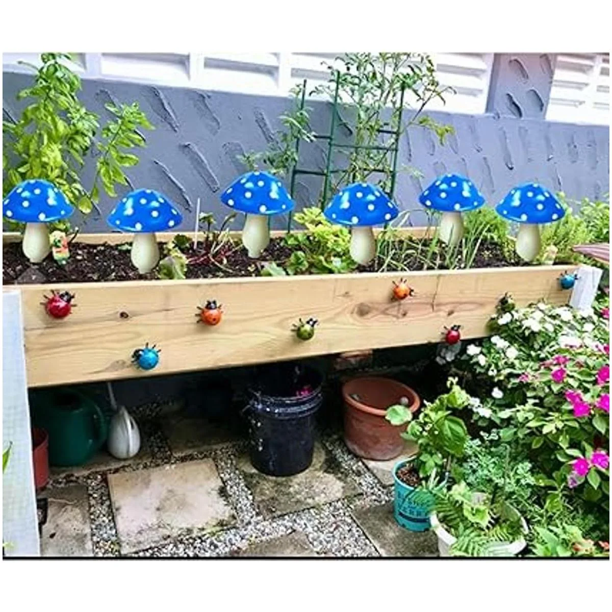 6 hongos azules: 6 hongos azules cada juego, hermoso y natural. Añaden un toque de color y belleza a cualquier jardín exterior.