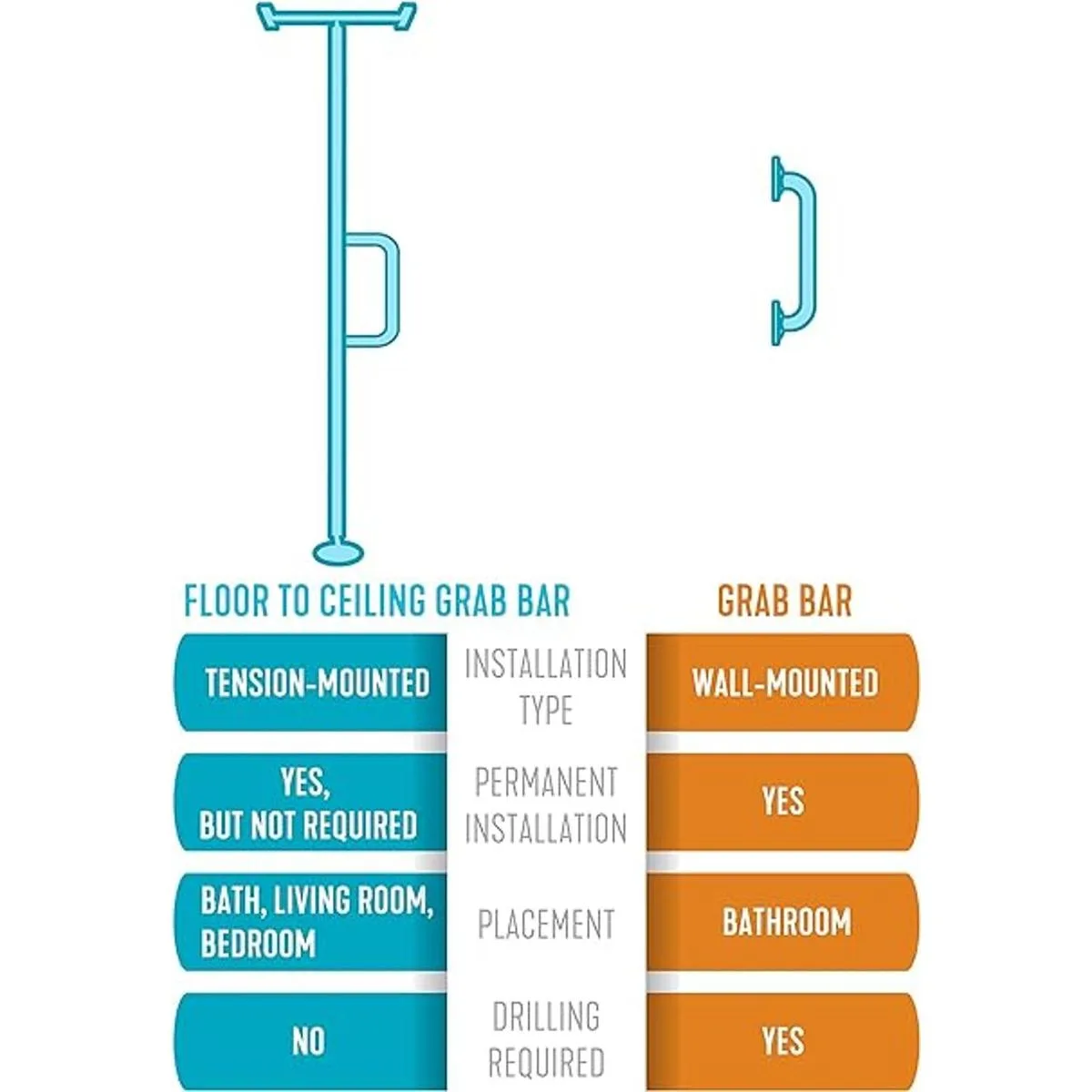 Able Life Barra de agarre universal de piso a techo, poste de transferencia de suelo a techo montado en tensión para ancianos, barra de apoyo de seguridad de baño y riel de estabilidad con asa de soporte