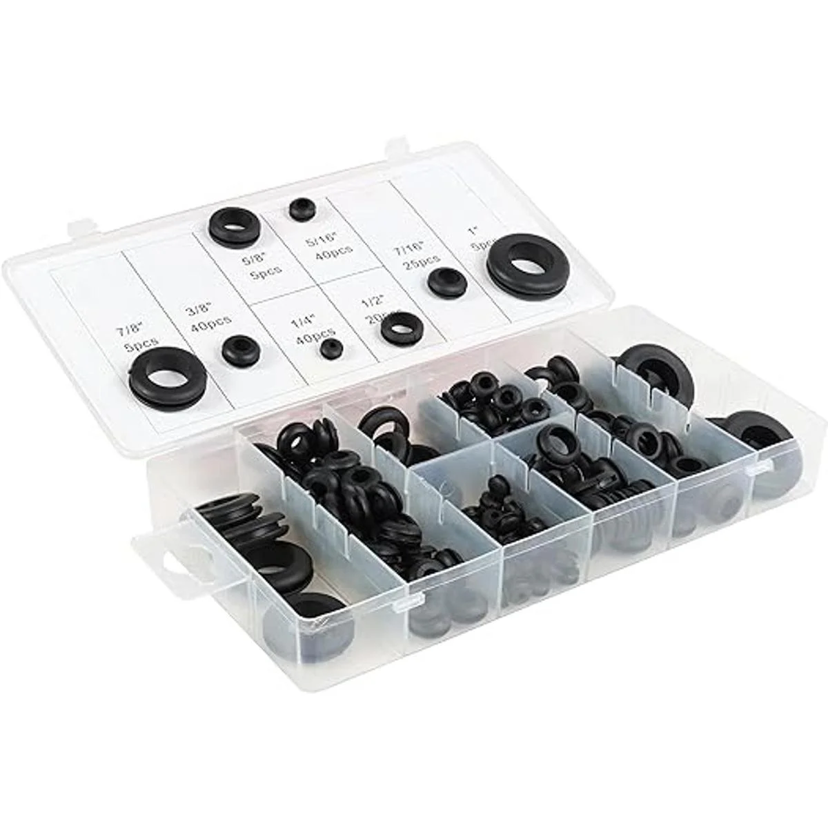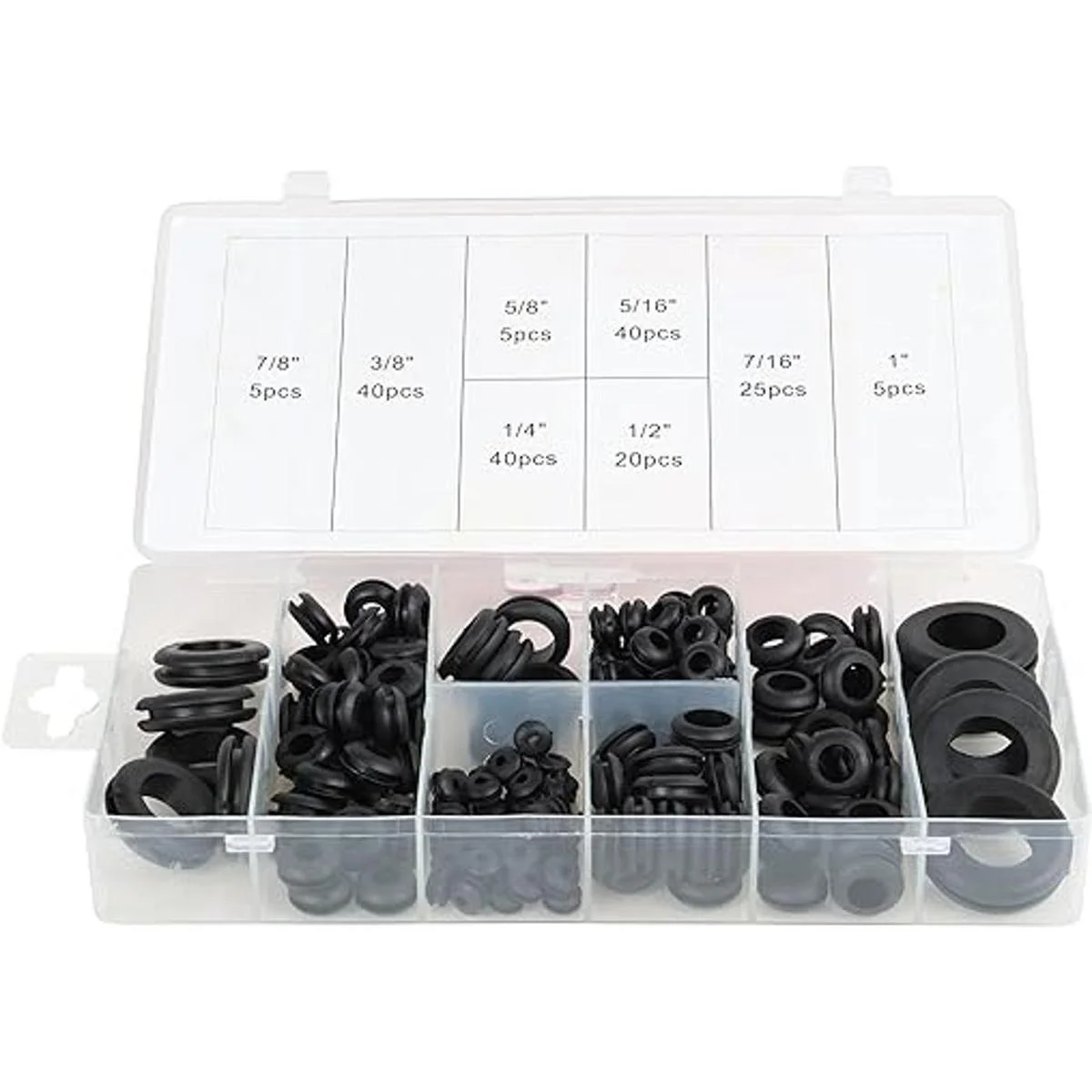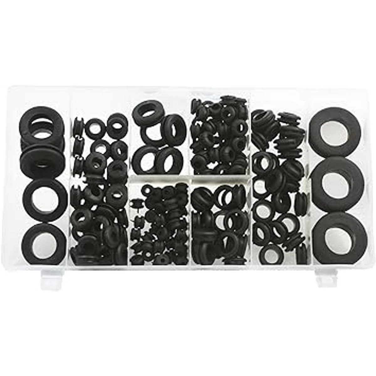 Surtido de arandelas de goma SAE de 180 piezas, los ojales evitan el contacto de metal sobre metal para un paso seguro a través de conexiones en cortafuegos y cruces.
