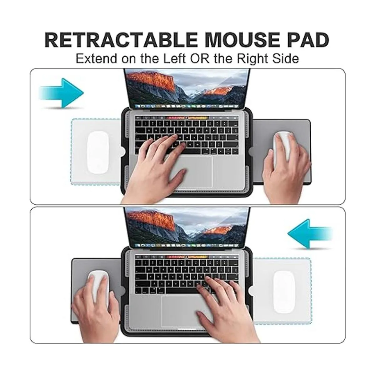 AboveTEK Escritorio portátil de regazo para laptop con bandeja retráctil izquierdaderecha, antideslizante con protección contra el calor, mesa de soporte para computadora con superficie de trabajo más fría resistente y estable para cama, sofá, sofá o viaje