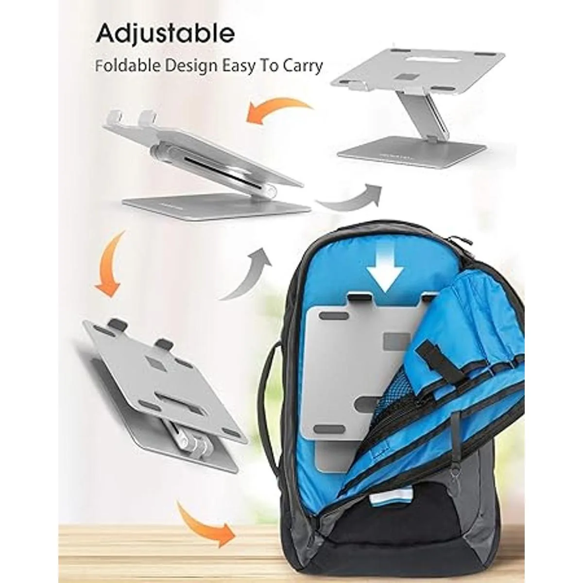 Excelente calidad: hecho de aluminio resistente, lo que hace que sea un soporte de computadora excepcionalmente sólido y duradero que también es suave y elegante en apariencia. Este soporte para portátil es portátil para llevar para un viaje