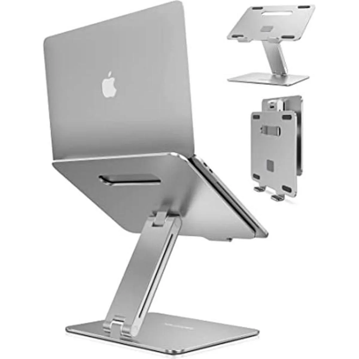 AboveTEK Soporte para computadora portátil, elevador ajustable para computadora, soporte ergonómico de aluminio para escritorio, compatible con MacBook Pro, Air, HP, se adapta a portátiles de hasta 17 pulgadas, color plateado