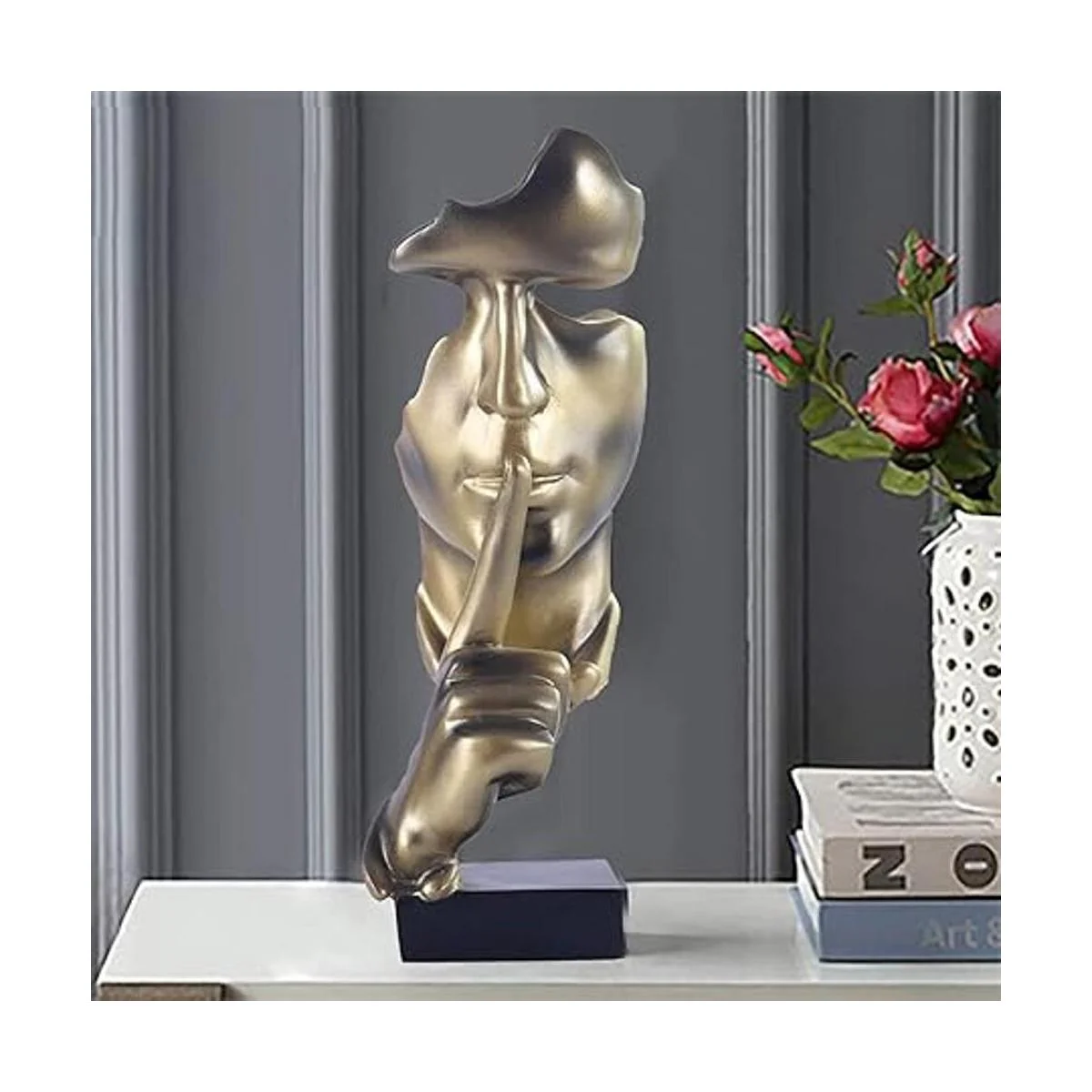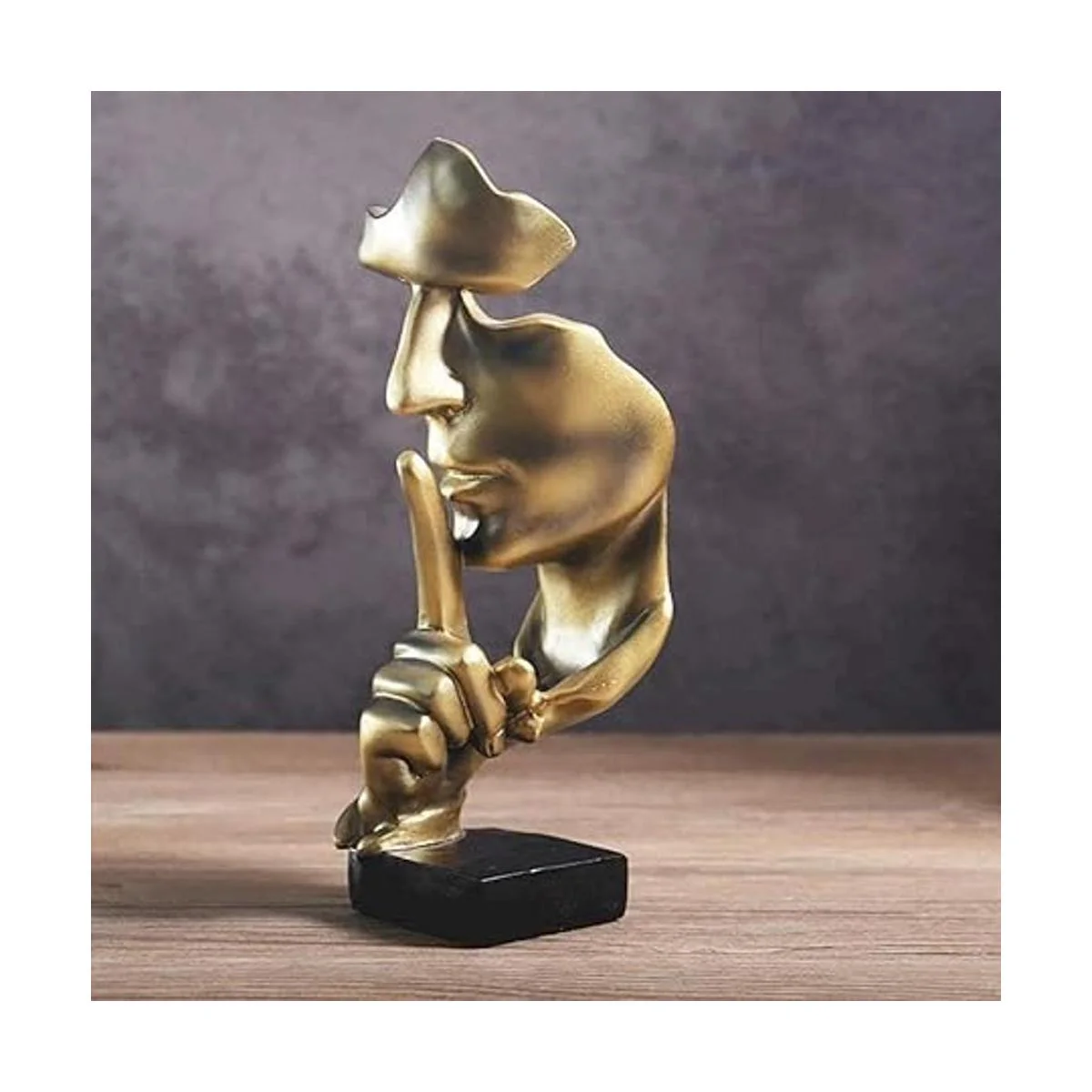aboxoo Estatua de pensador, figura de arte abstracto de el silencio es oro, esculturas modernas de resina para el hogar, objetos decorativos, piano, decoración de escritorio para habitación creativa, hogar, oficina, estudio dorado