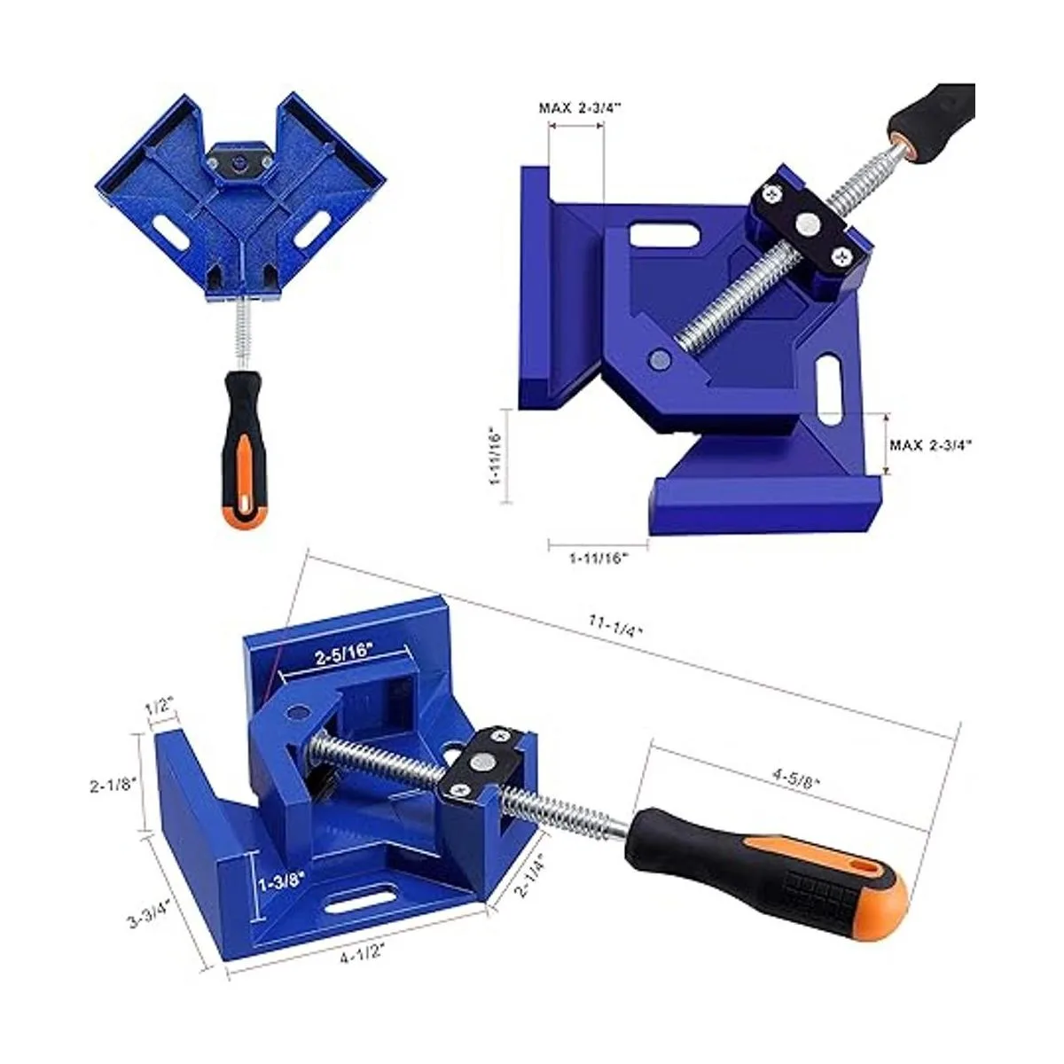 Abrazaderas de esquina para carpintería, juego de abrazaderas de ángulo recto de 4,90 grados, abrazadera cuadrada de aleación de aluminio, herramientas de madera para soldadura de metal, marco de fotos, gabinete, junta de inglete de cajón