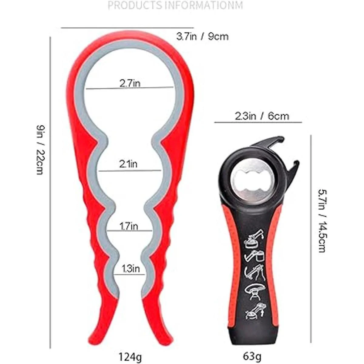 2 paquetes en un juego 1 abridor de botellas 5 en 1, 1 abridor de tarros 4 en 1.