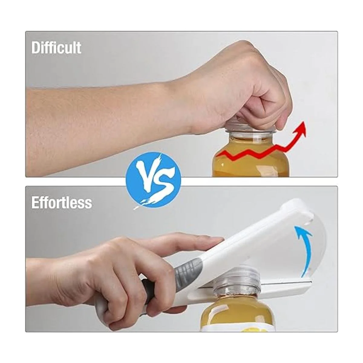Abridor de tarros, herramienta ideal para abrir tapas de tarros, sin esfuerzo para desenroscar tapa de cualquier tamaño, abridor de tarros para manos débiles o personas mayores con artritis, abridor de tarros de agarre y abrelatas de debajo del gabinete, dos formas de usar
