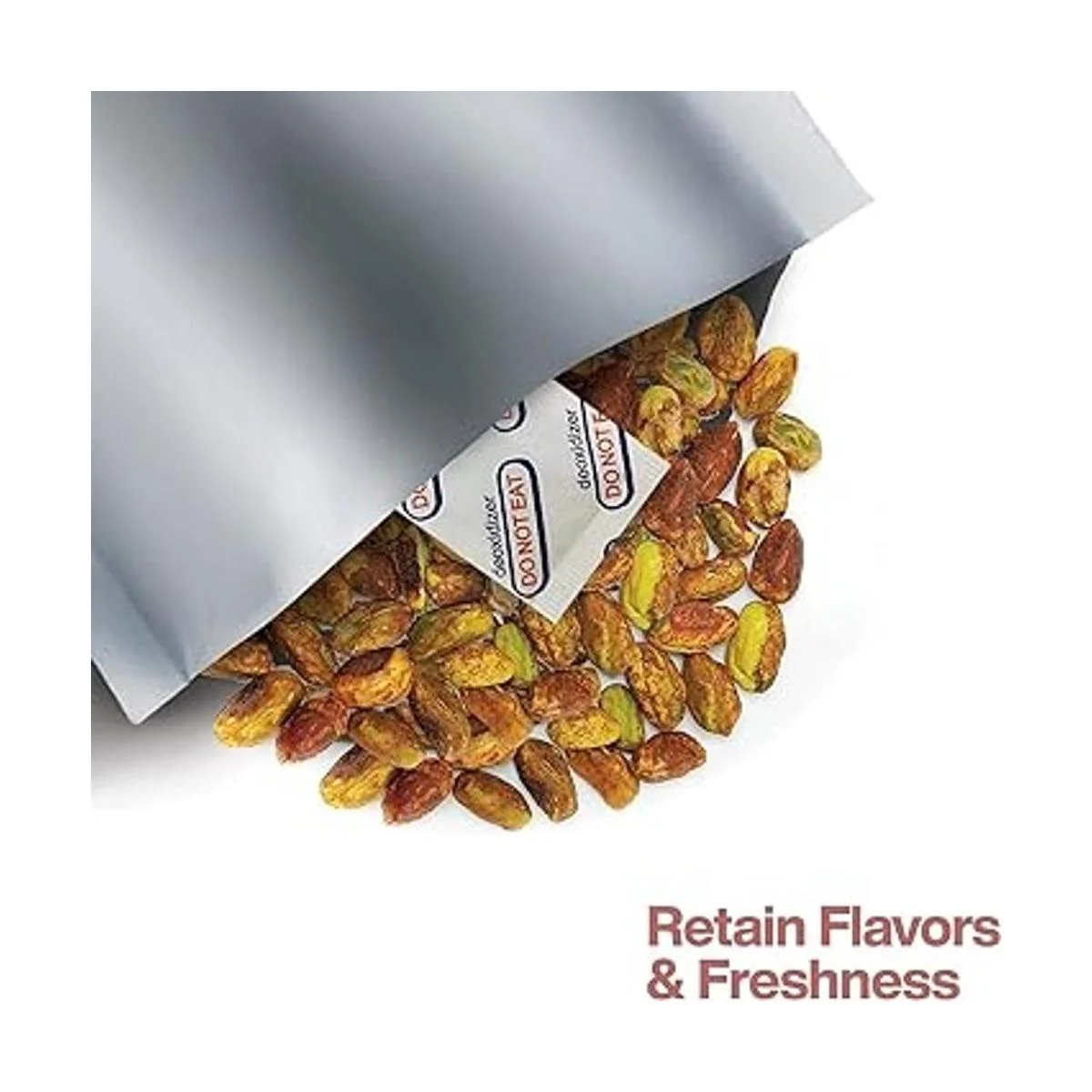 Excelente opción para tu almacenamiento de alimentos: los absorbentes de oxígeno de 300 cc son eficaces para absorber grandes cantidades de oxígeno. Ten en cuenta que después de usar los absorbentes de oxígeno dentro de una bolsa de Mylar, la bolsa de Mylar no tendrá un aspecto empaquetado al vacío, ya que solo funciona para oxígeno, que es solo aproximadamente el 21 del aire. Por lo tanto, no importa cuántos absorbentes de oxígeno utilices, todavía tendrás alrededor de 8/10 de aire restante en el interior.