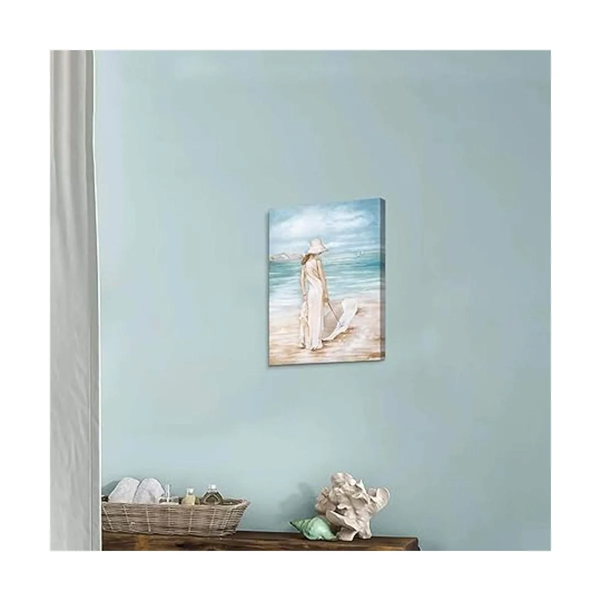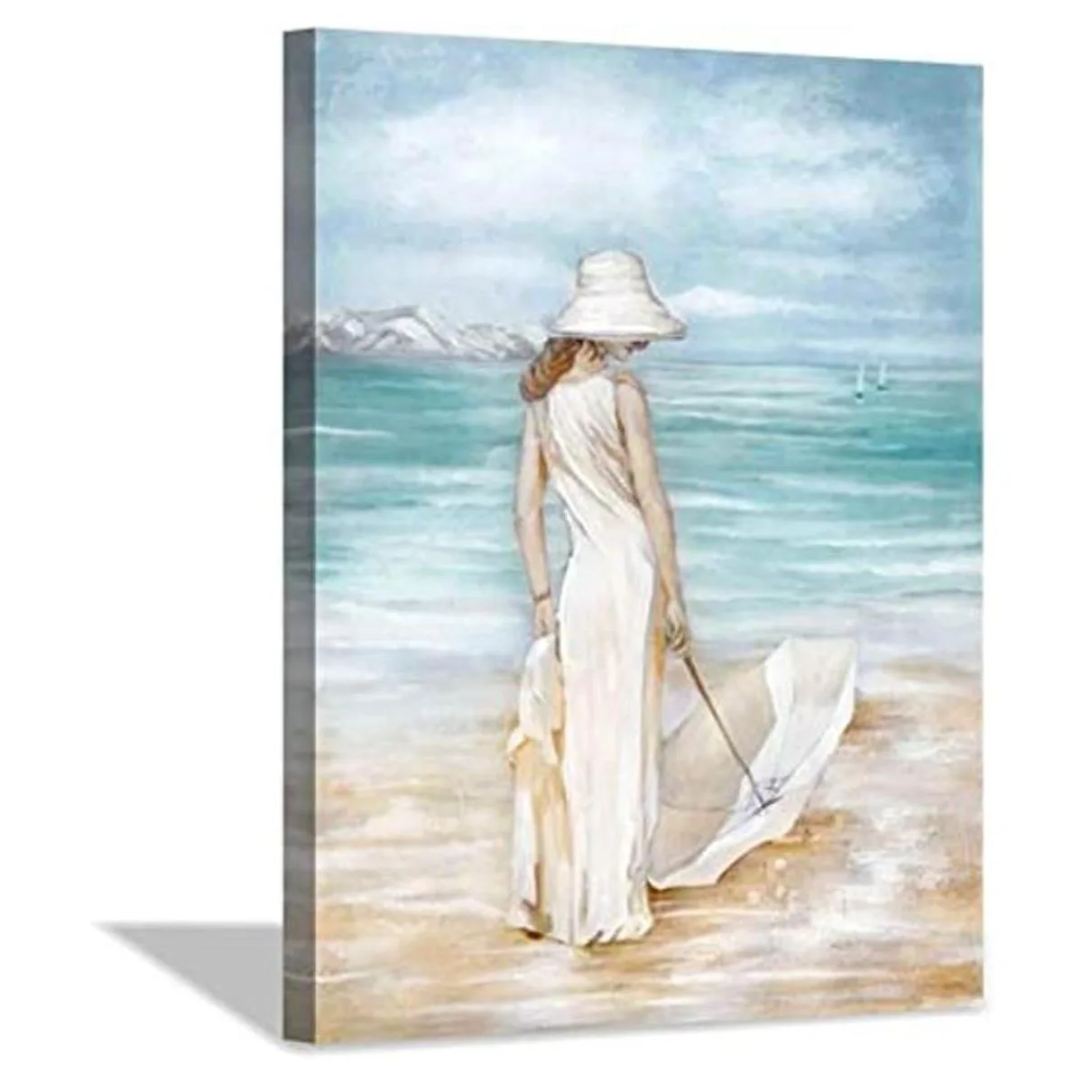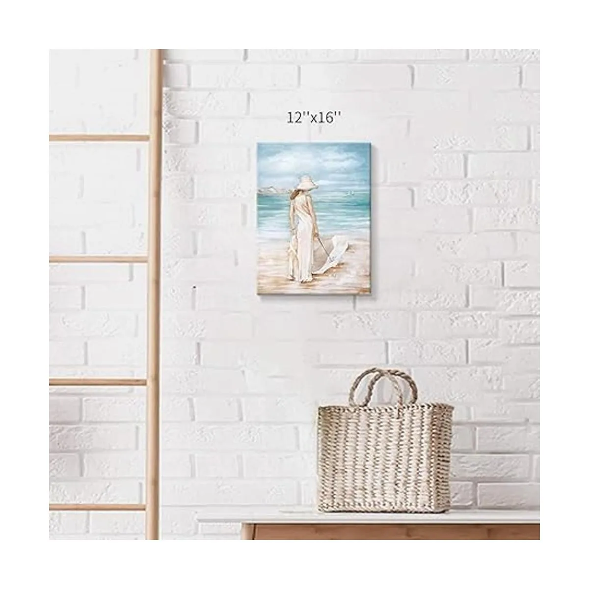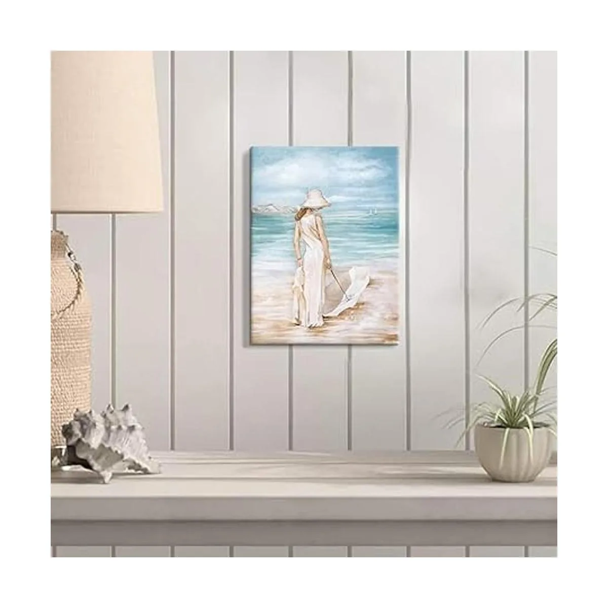 Beach Lady Painting Canvas Wall Art: Pieces included artwork hanging kit. A set includes 1 panel beach picture wall art 12×16 inches . Copyright licensed image with high resolution definition