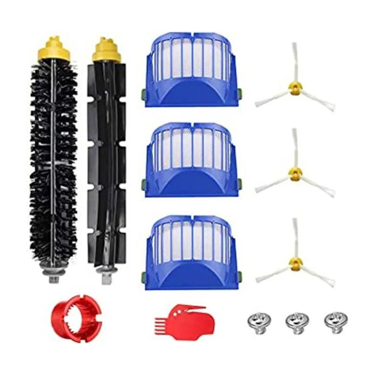Accesorio para aspiradora iRobot Roomba series 600, 610, 620, 650, piezas de repuesto, incluye 3 filtros, cepillo lateral y 1 paquete de cepillo de cerdas y cepillo batidor flexible, 1 paquete de herramientas de limpieza.