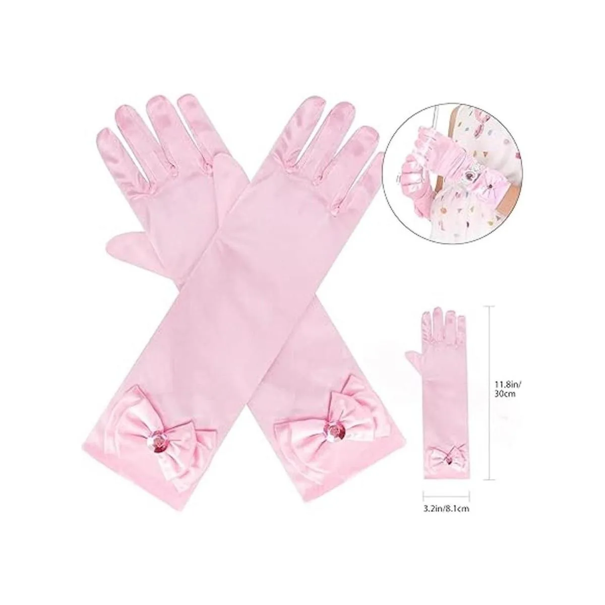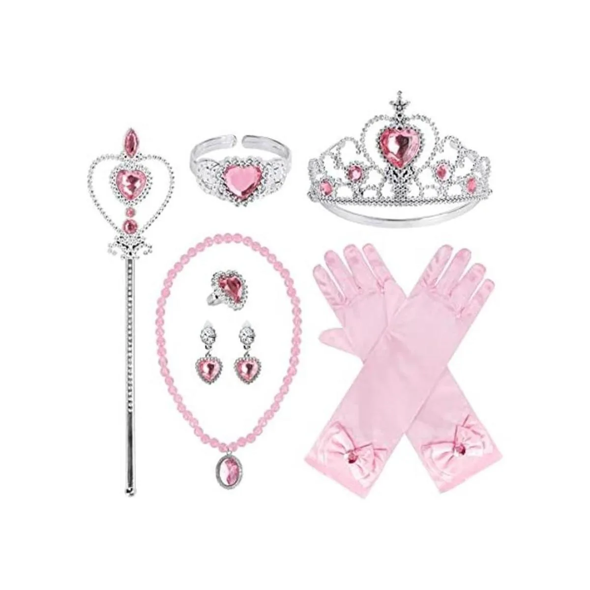 Accesorios de fiesta de princesa para disfraz de princesa, guantes de disfraz de princesa, tiara, collar, aretes, pulsera y anillo, juego de regalo de 9 piezas rosa, juego de 7, 9 piezas