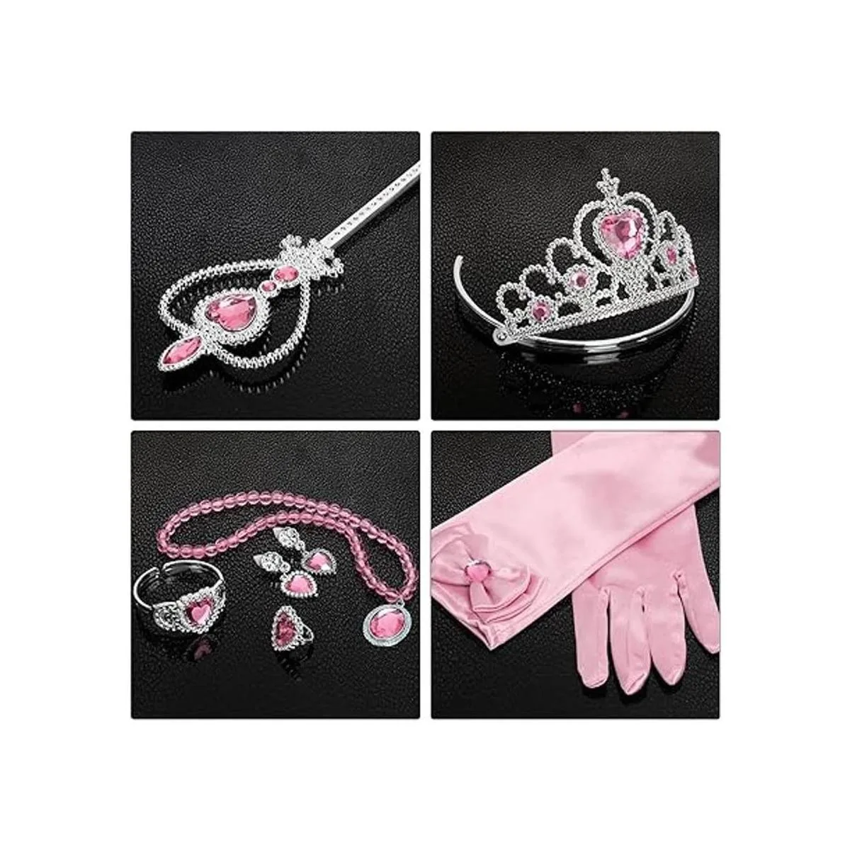 El paquete incluye: 1 pulsera, 1 corona de princesa, 1 varita, 1 anillo, 1 collar, 1 par de guantes, 1 par de pendientes.