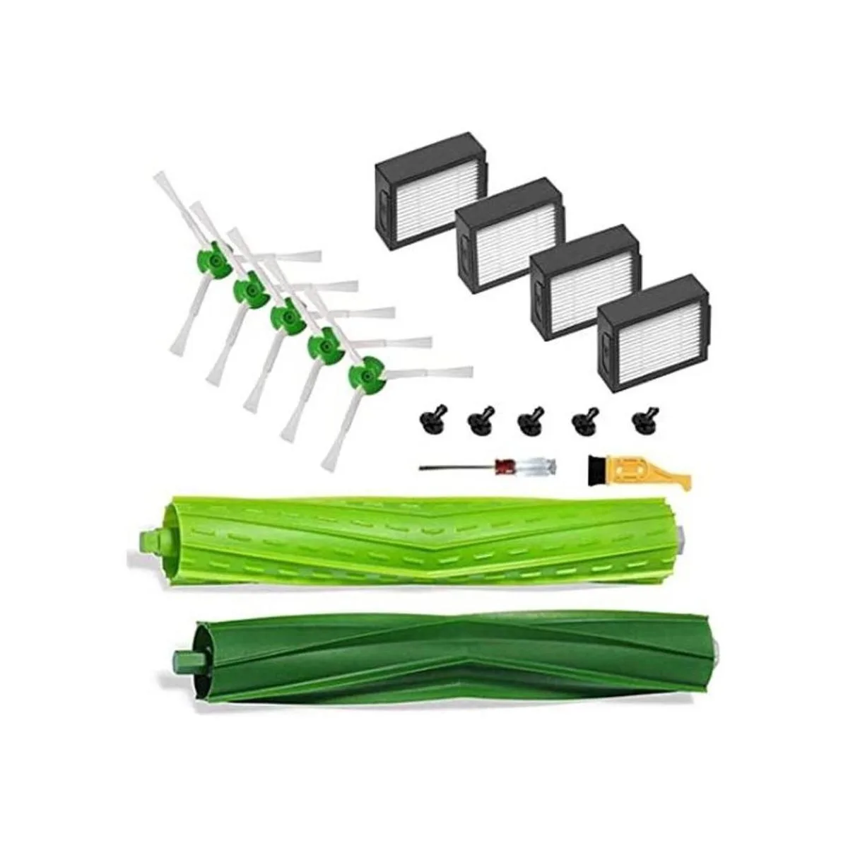 Accesorios de repuesto compatibles con iRobot Roomba i7 i7 i3 i3 i1 i4 i6 i6 i8 Plus E5 E6 E7 I, E J Series Aspiradora, 1 juego de cepillos de goma, 4 filtros HEPA y 5 cepillos laterales