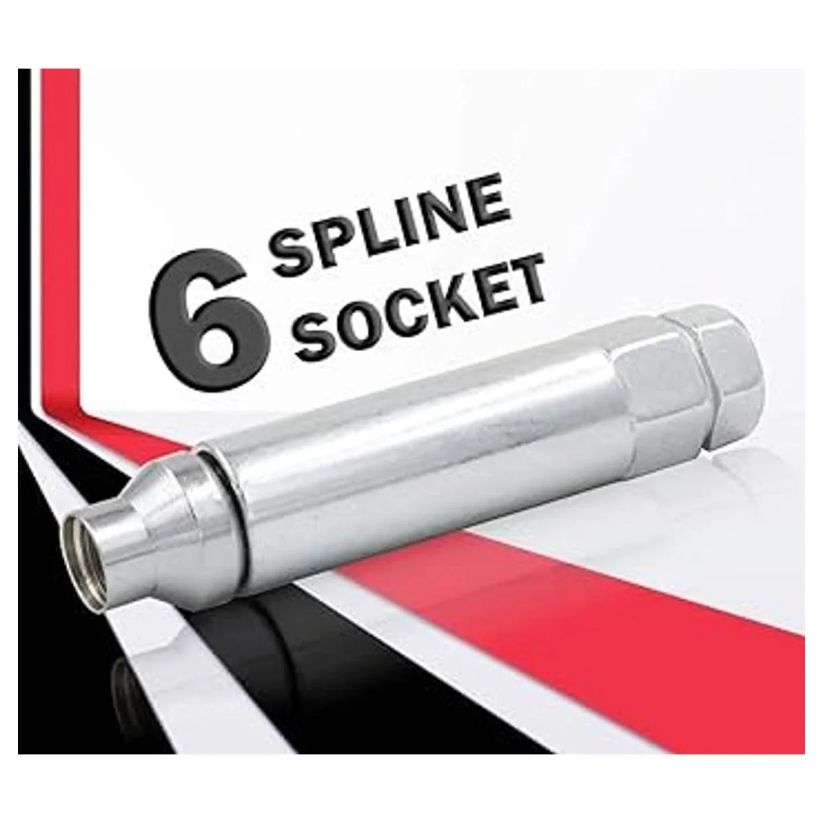 Accesorios de rueda piezas cromo 6 puntos Spline Drive Tuner Socket clave herramienta para 6 tuercas de ranura de 0.638 in diámetro interior – doble llave hexagonal con 0.748 in y 0.827 in (13/16)
