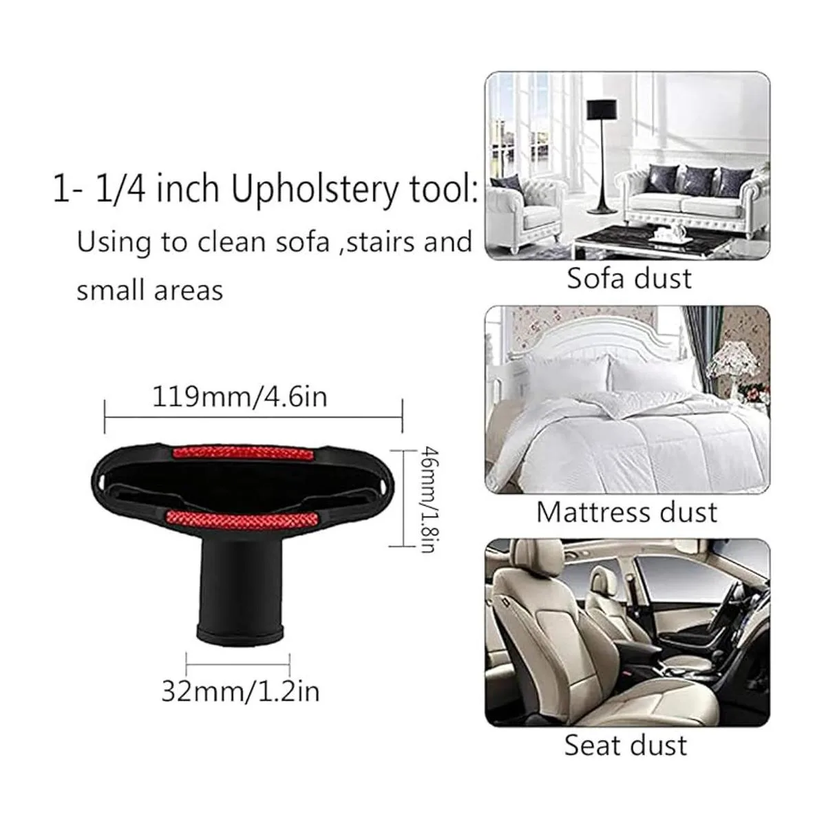 Los accesorios de aspiradora de 1 1/4 pulgadas para aspiradora de tienda son flexibles. Puedes utilizar estos accesorios de aspiradora para limpiar cualquier parte de tu hogar, como: teclado, cualquier hueco, persiana, sofá, ventilación, cajón, coche, polvo de mascotas y mucho más.