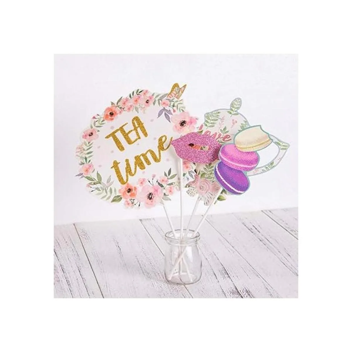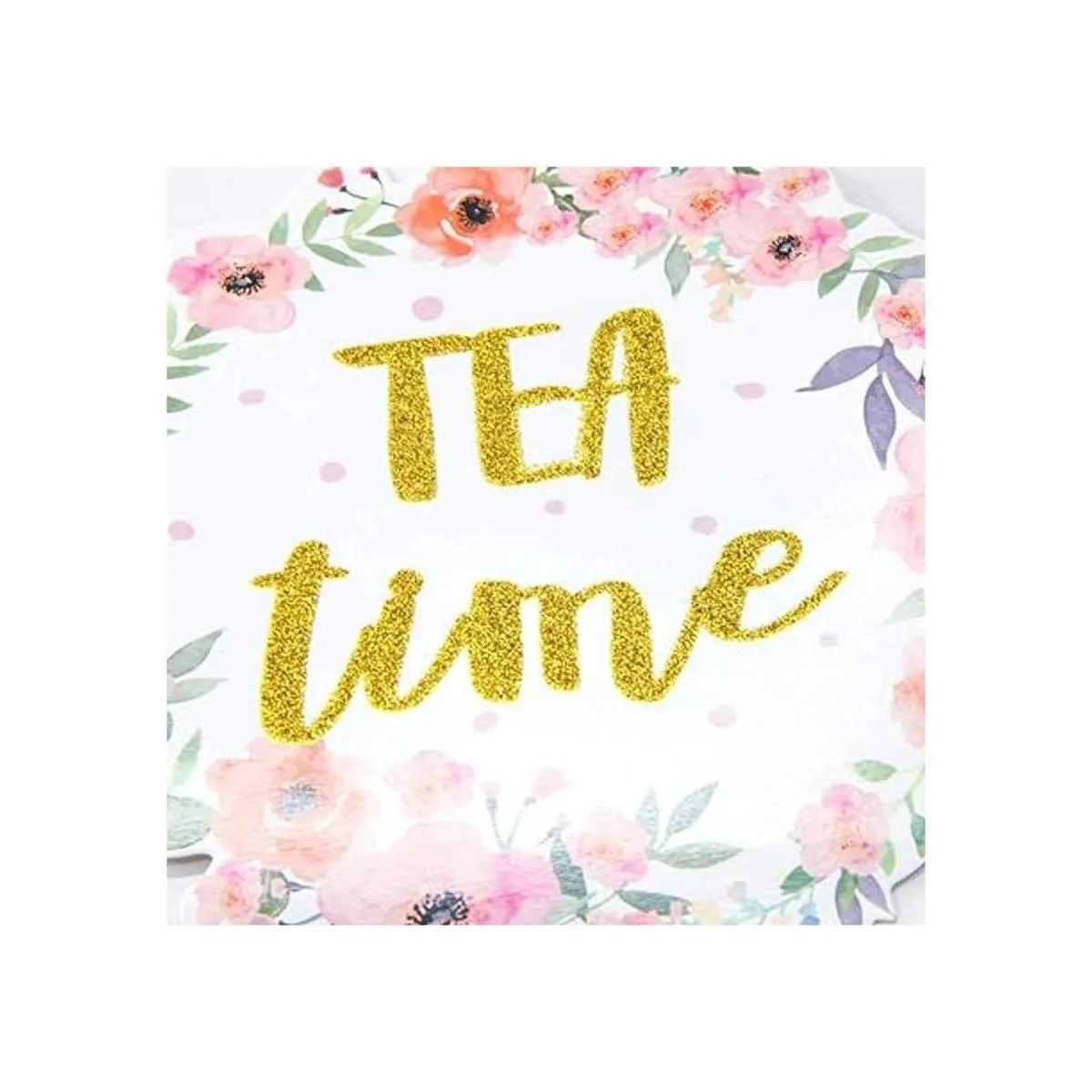 Es tiempo de té: muchos diseños de patrones, por ejemplo: tetera, ventilador, sombrero, guantes de mujer con encaje, helado, flores y así sucesivamente. Un lado impreso, con purpurina dorada.